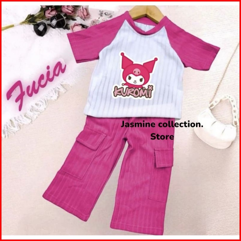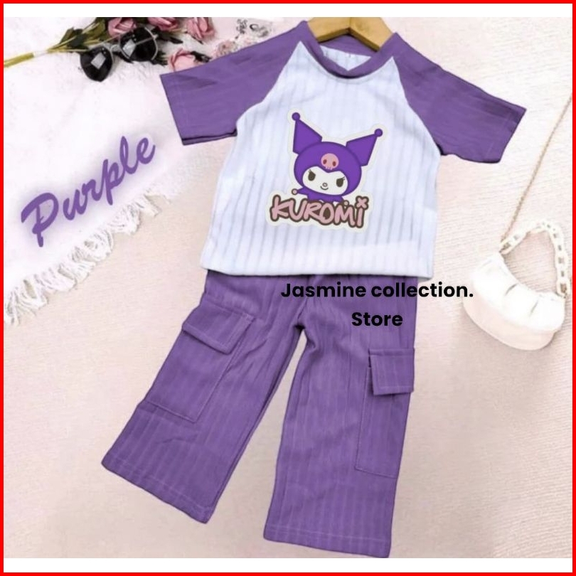 Setelan Kuromi Anak Perempuan Bahan Qnit Hornet 1-10 Tahun