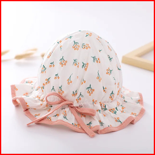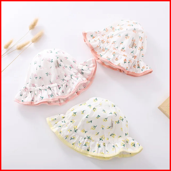 Topi Bucket Floppy Newborn Bayi Perempuan Model Manis - Adjustable Baby Sweet Summer Hat