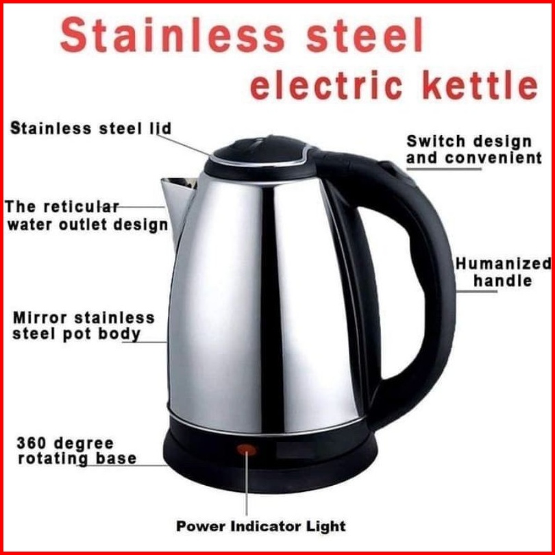 Teko Listrik Scarlett 2 Liter Full Stainless Steel Pemanas Air Electric Termos Pemanas Air Otomatis