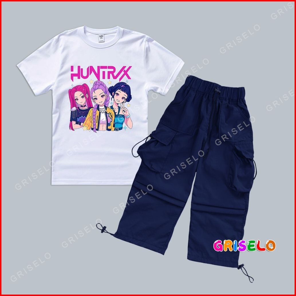 Setelan Kaos Kpop Demon Hunt Huntrix Anak Perempuan 1-12 Tahun Cargo Dusky Koreanstyle