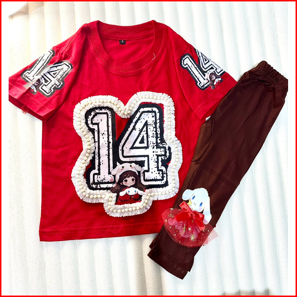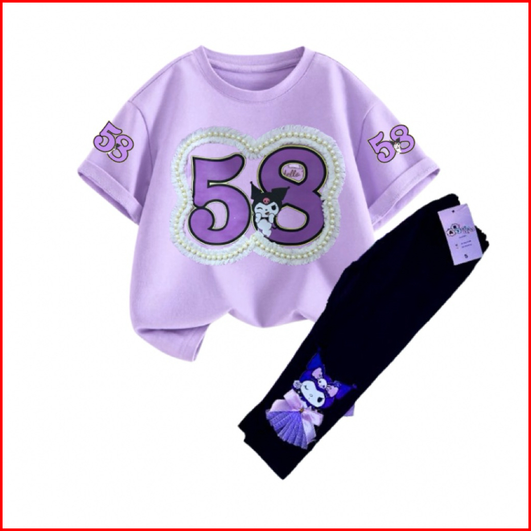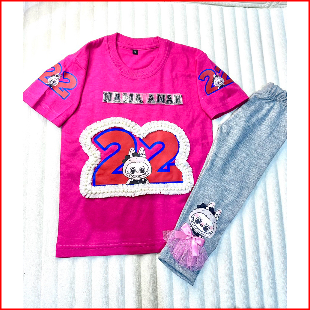 Setelan Anak Perempuan 1-10tahun Bisa Costum Sticker Nama Anak Baju Kaos Anak Cewek Cowok Baju Anak Kuromi Melodi Labubu