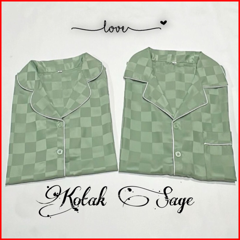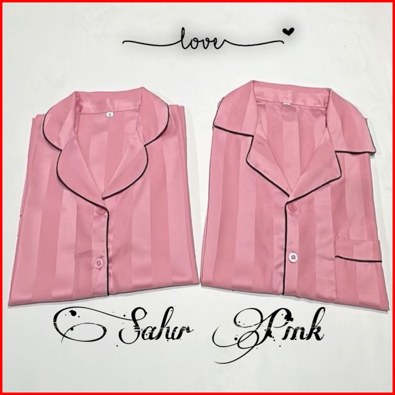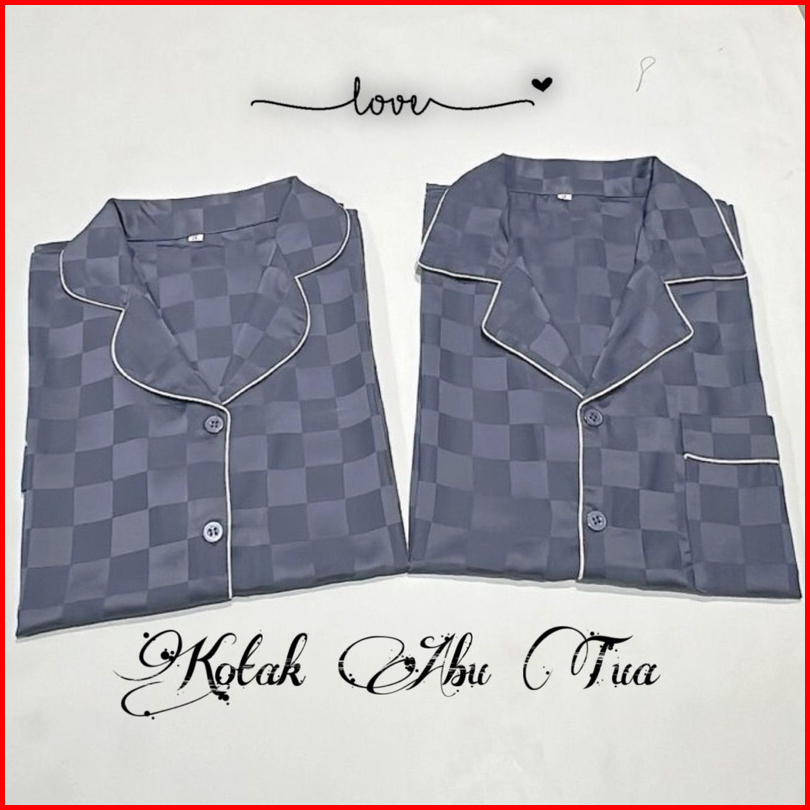 Paket Piyama Cp Couple Salur Garis Kotak Satin Sutra Wanita Dan Pria Lengan Pendek Celana Panjang