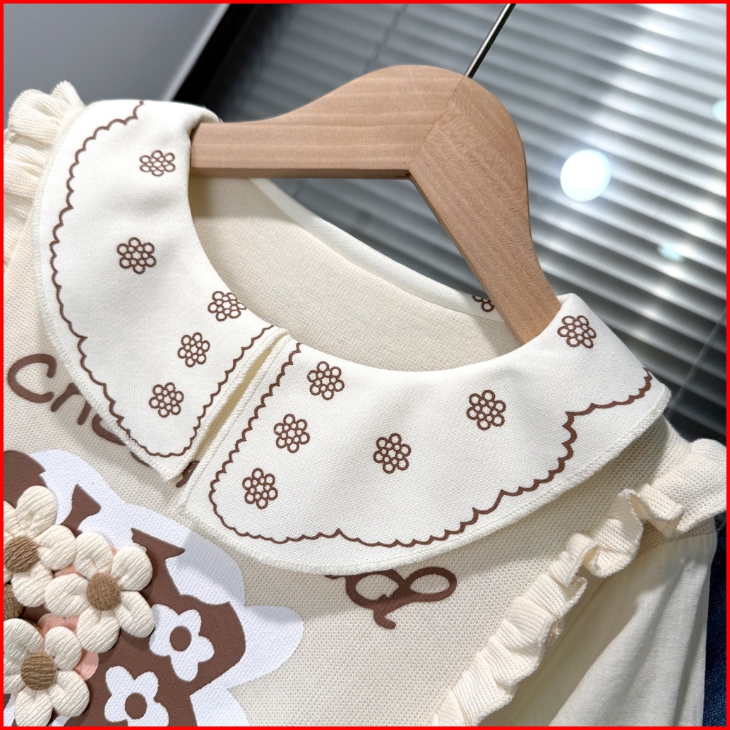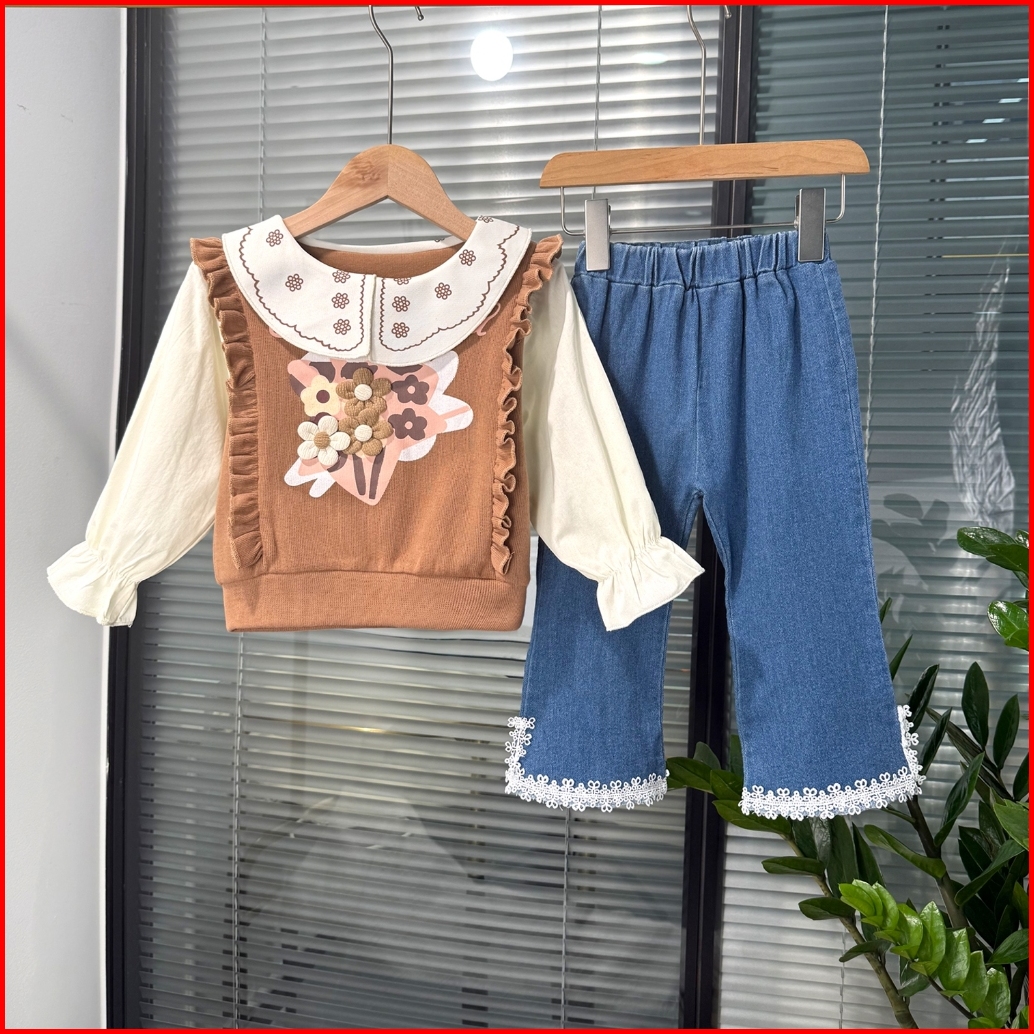 Joyfultots Setelan Anak Perempuan Jeans Kasual Atasan Dua Potong Palsu Lengan Panjang Gaya Korea Set