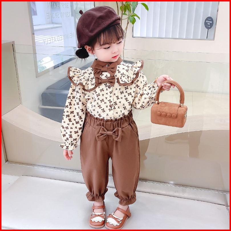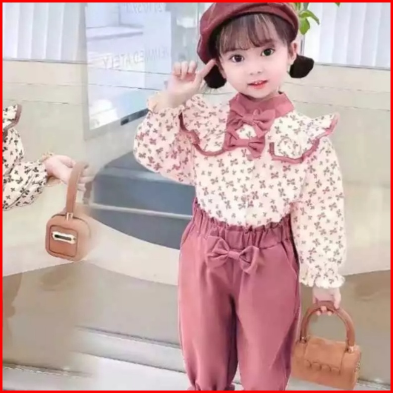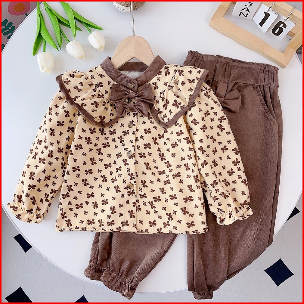 Futurestar Setelan Anak Perempuan Bahan Velvety Motif Bunga Cantik Korean Style Usia 1-4 Tahun
