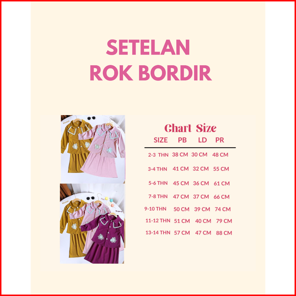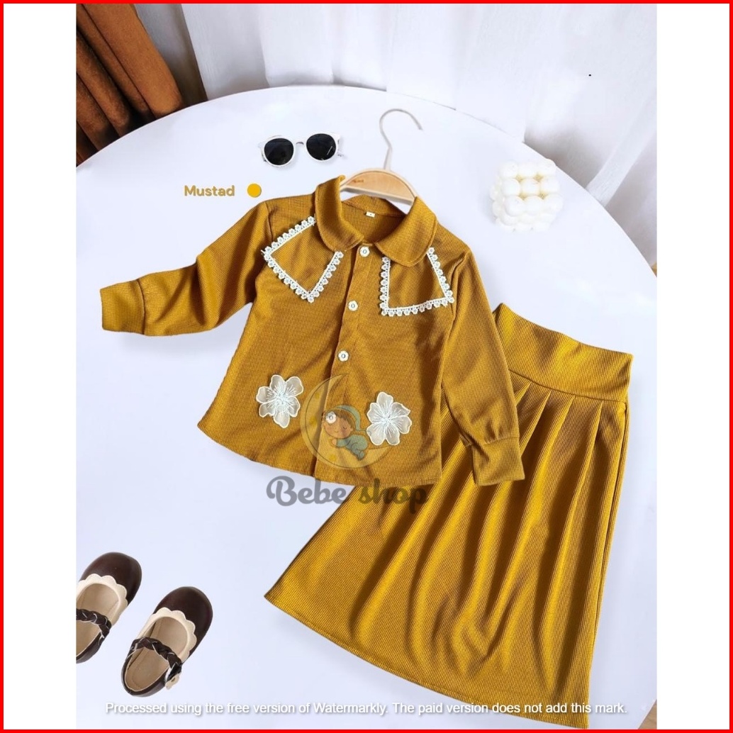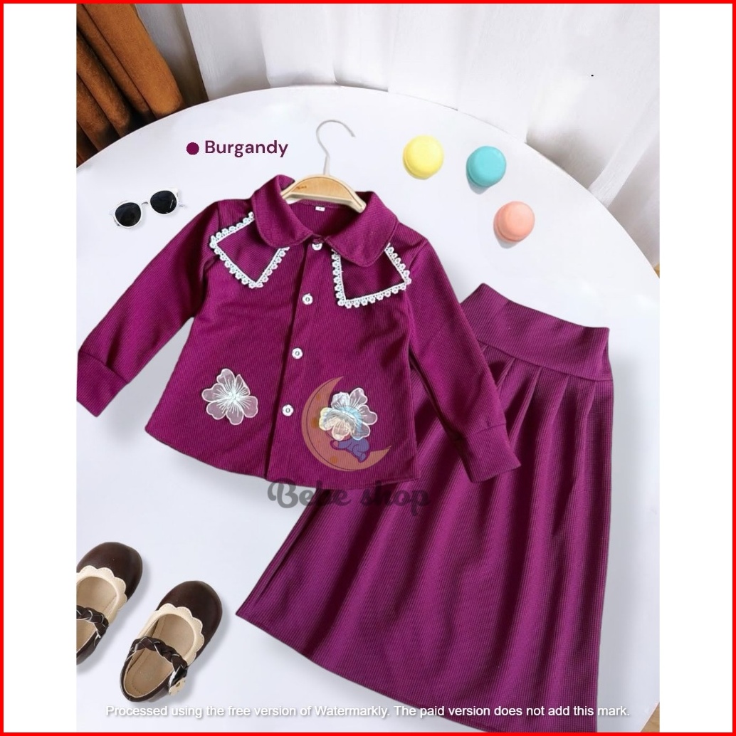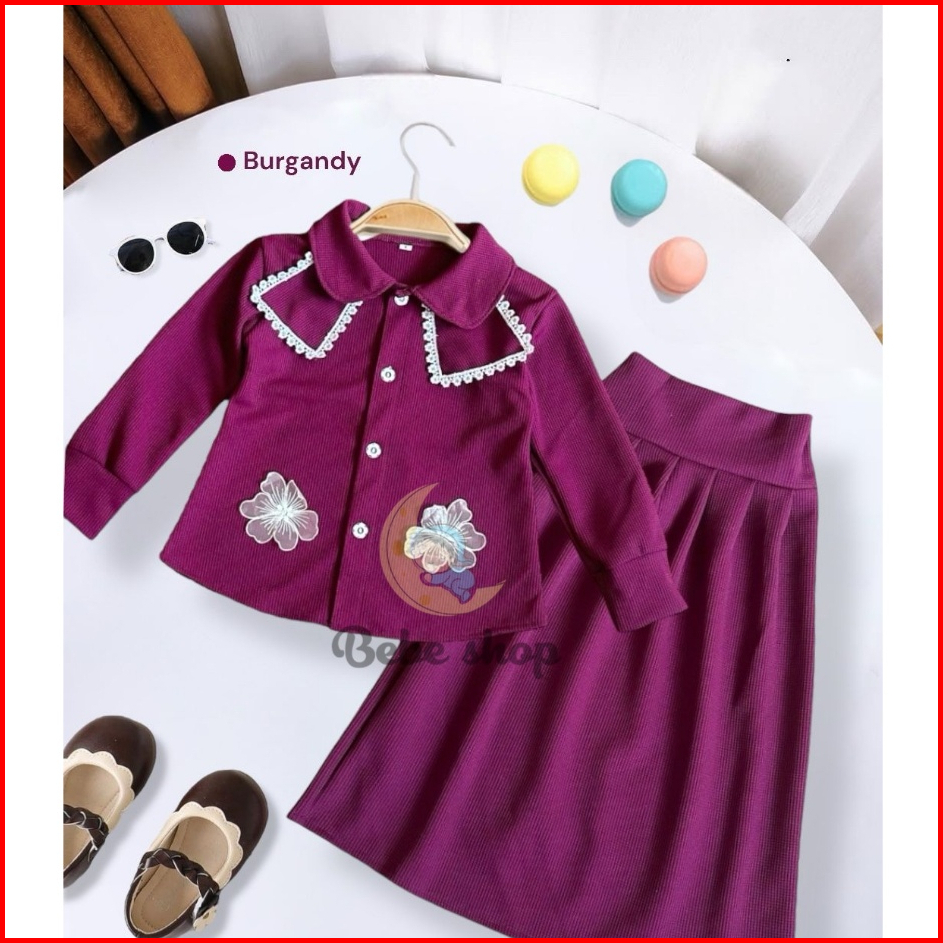 Setelan Rok Anak Perempuan Bahan Knit Wafel Motif Bunga Bordir Usia 1 Sampai 12 Tahun Banyak Pilihan Warna