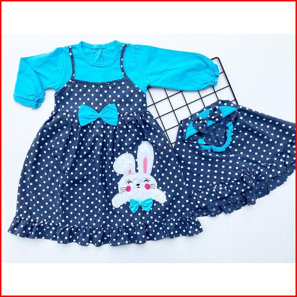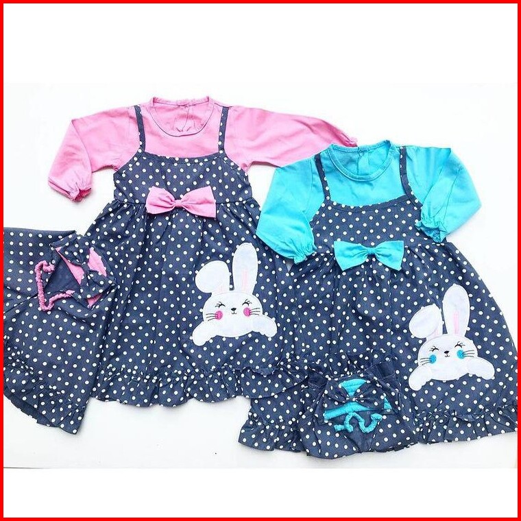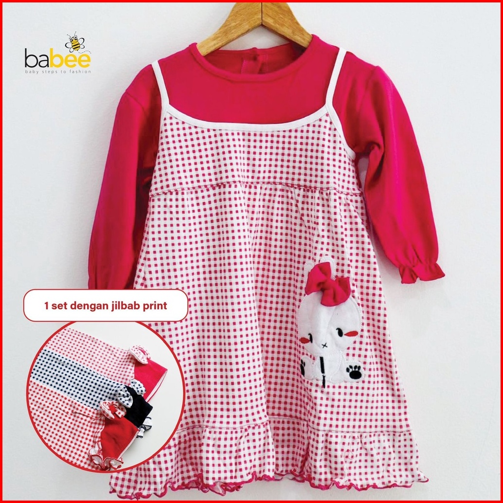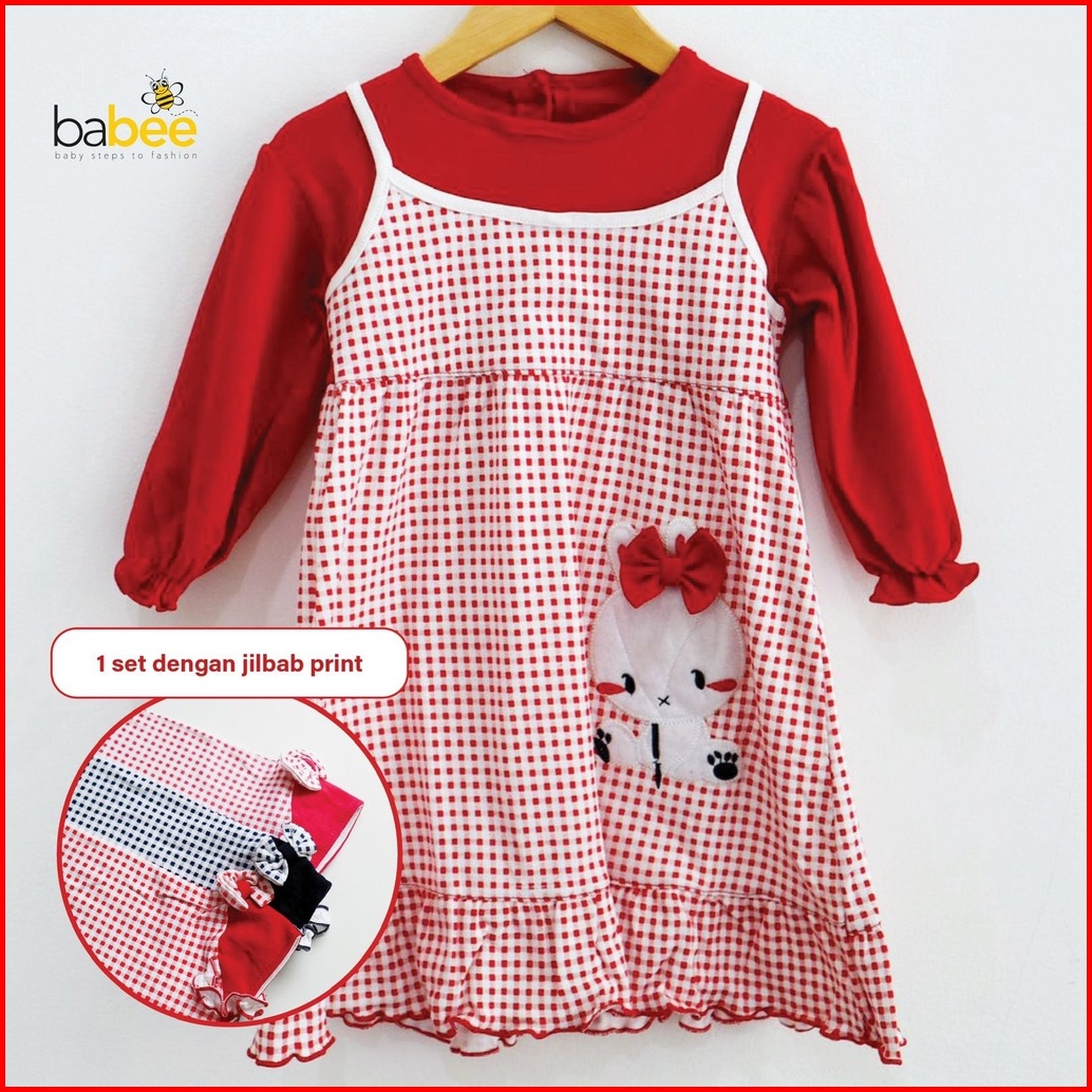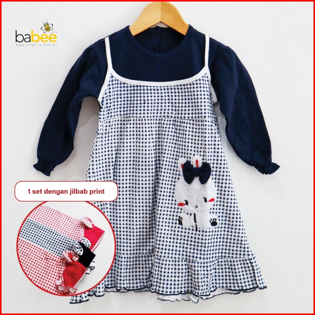 Polka Rabbit Bon Bon Little Bee Head Setelan Gamis Baju Muslim Hijab Lucu Fashion Anak Bayi Perempuan Cewek Terlaris Ter