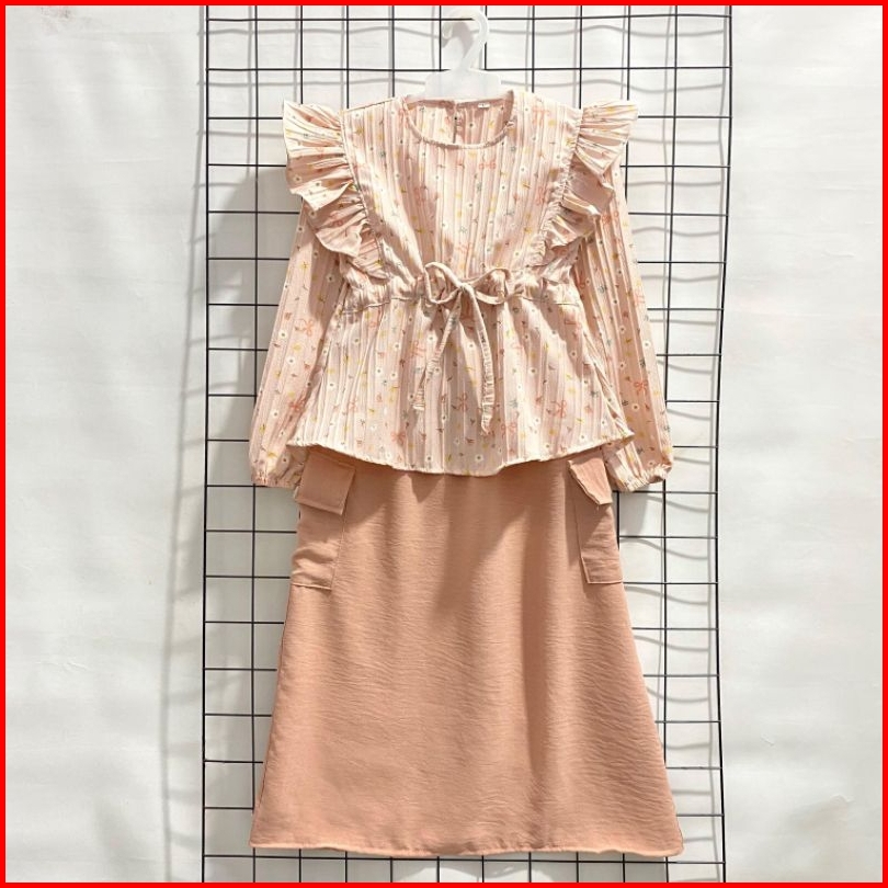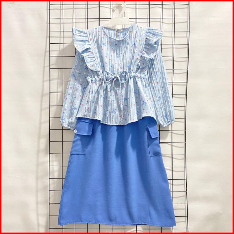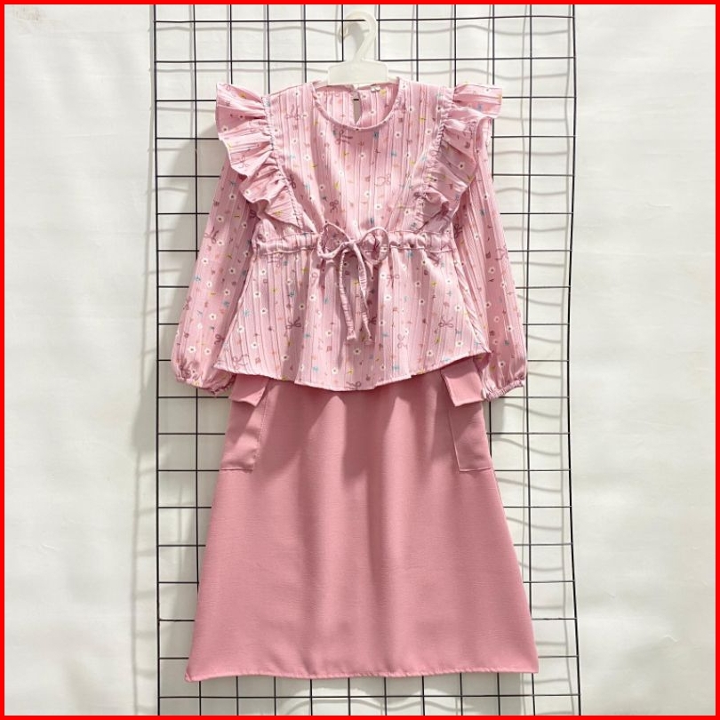 Set Rok Anak Kekinian Ii Rok Model Kiyomi Bahan Crinkle Motif Pita 2-12 Tahun