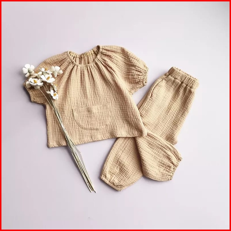 Setelan Anak Perempuan Amby Kantong Depan Set Anak Cringkle Airflow
