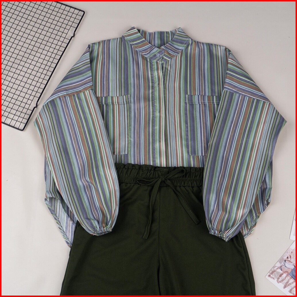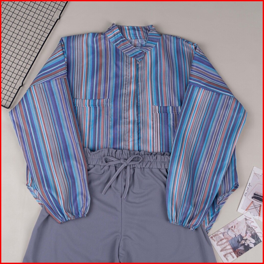 One Set Kemeja Oversize Set Aprilia Candy Sierra Stripe Wanita