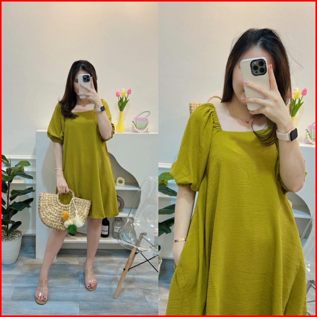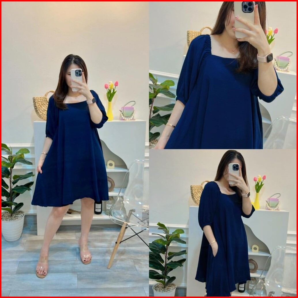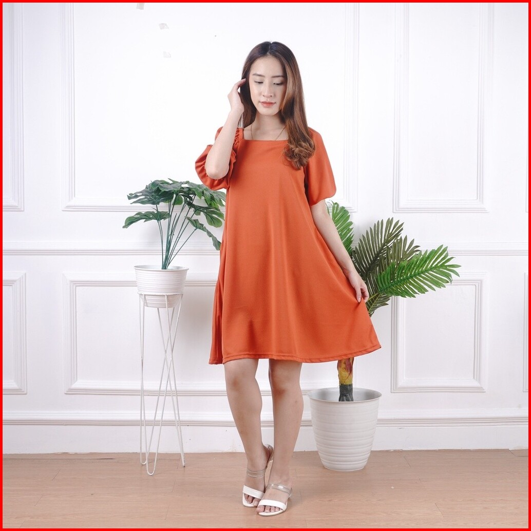 Delivia Dress Wanita Crepe Flarie Dress Terusan Wanita Lengan Puff