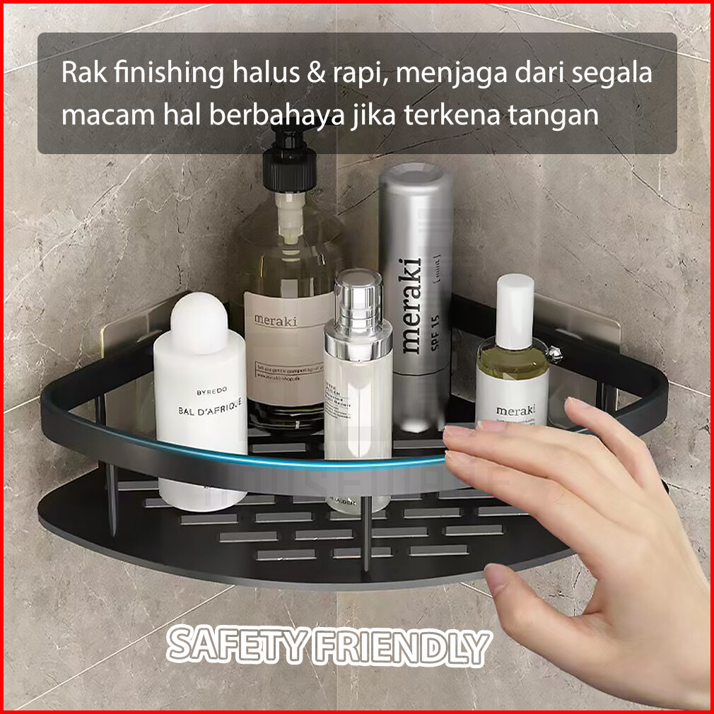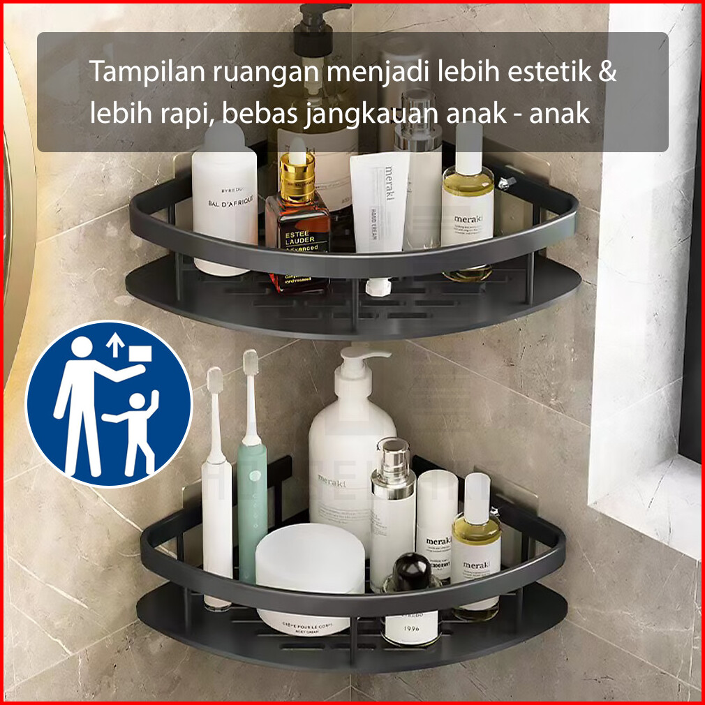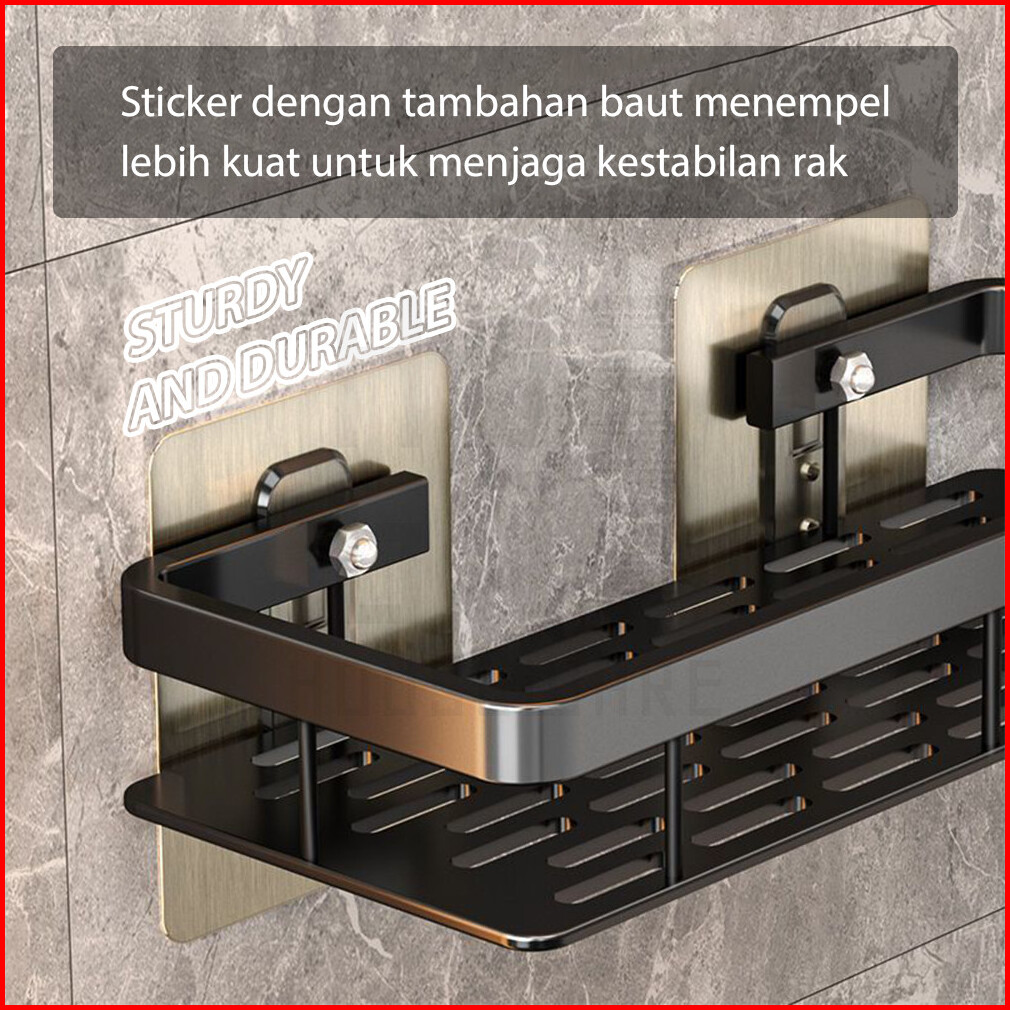 Rak Kamar Mandi Gantung Stainless Steel Anti Karat Rak Tempel Dinding Tempat Sabun Odol Toilet Hugo