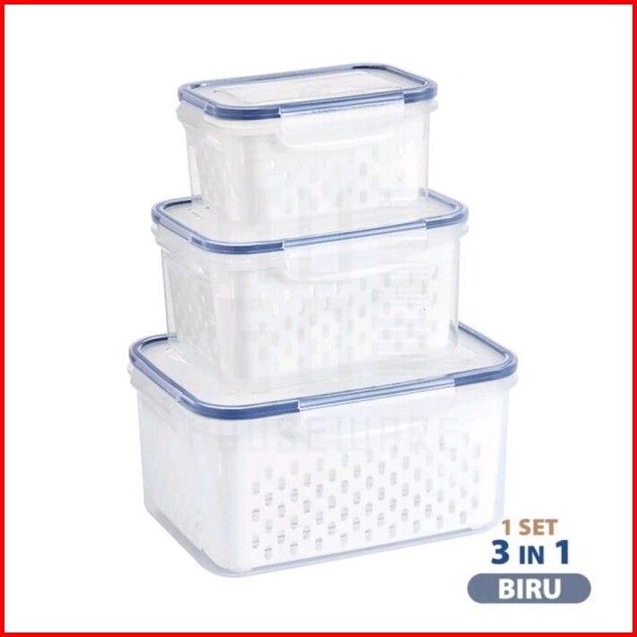 Kotak Penyimpanan Saringan 3 In 1 Wadah Saringan Pengering Sayur Kontainer Tirisan Kotak Dtg Grup