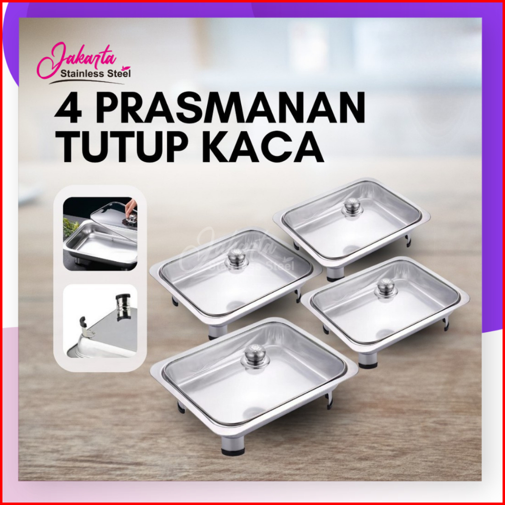 Jakarta Ss - 4 Set Prasmanan Tutup Full Kaca Tebal Nampan Prasmanan Bahan Stainless Steel Premium Tebal Untuk Acara Nika