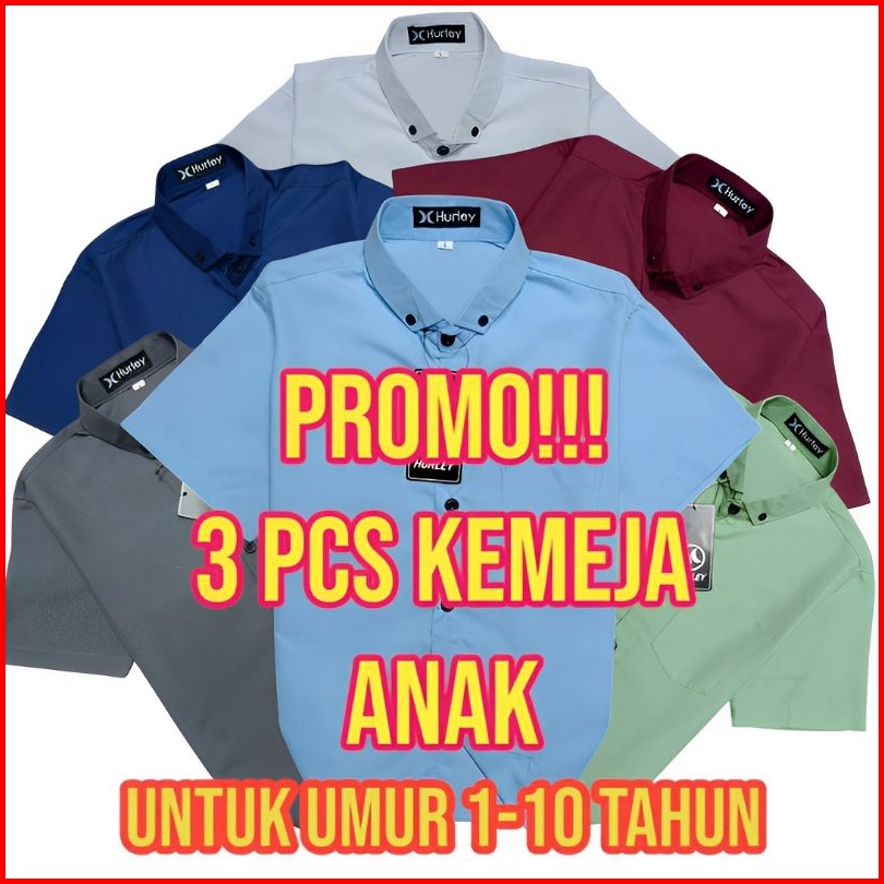 Promo 3 Pcs Kemeja Anak Laki-laki Kemeja Polos Anak Umur 1-10 Tahun Kemeja Distro Anak Bahan Mat Cutton