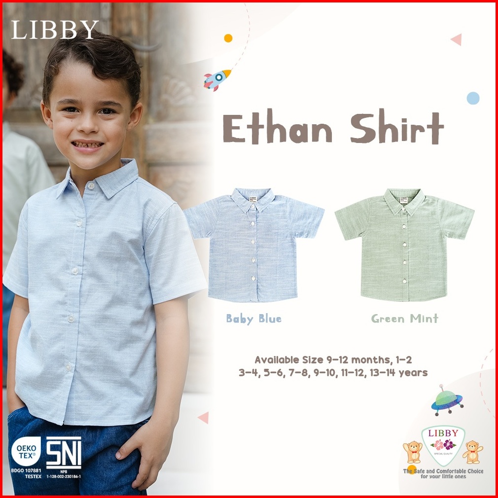 Libby Kemeja Anak Laki-laki Polos Katun Ethan Shirt Usia 9bln-14th 1pcs Kemeja Lengan Pendek Katun Polos Anak Baju Anak