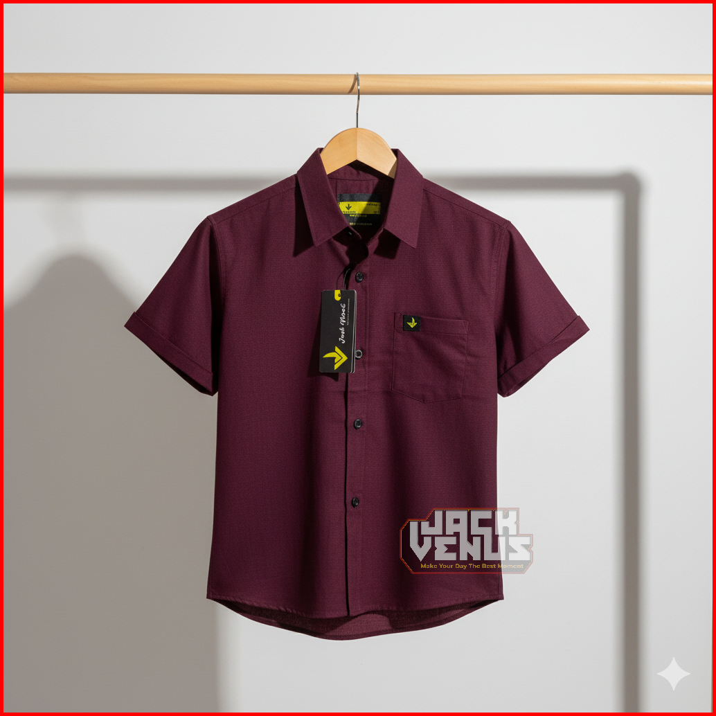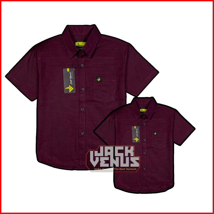 Jackvenus Burgundy Pendek Cigaret Kemeja Polos Couple Ayah Dan Anak Lengan Pendek Kain Sigaret
