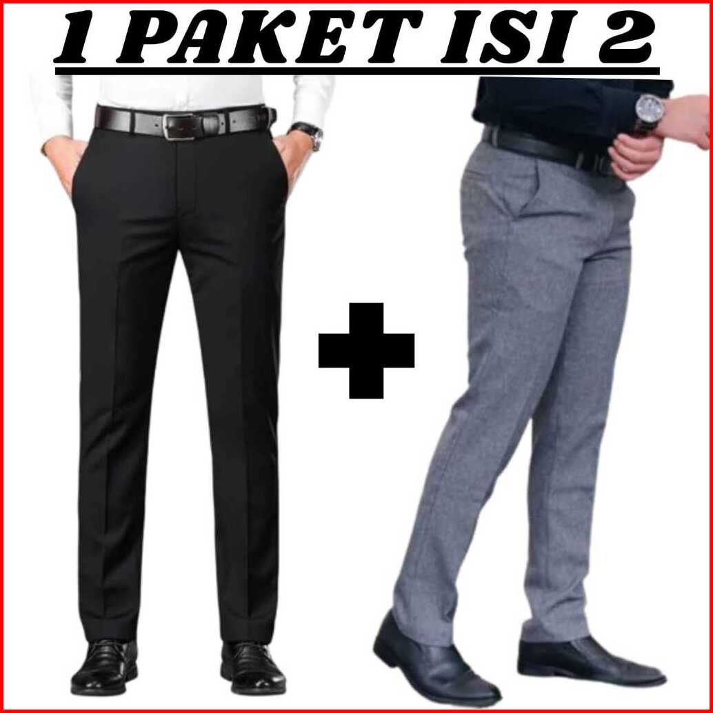 Promo Hemat 1 Paket Isi 3 Pcs Celana Kantor Formal Pria Slimfit Bahan Dasar Kain Woll