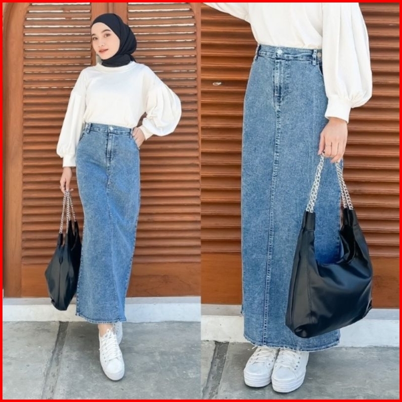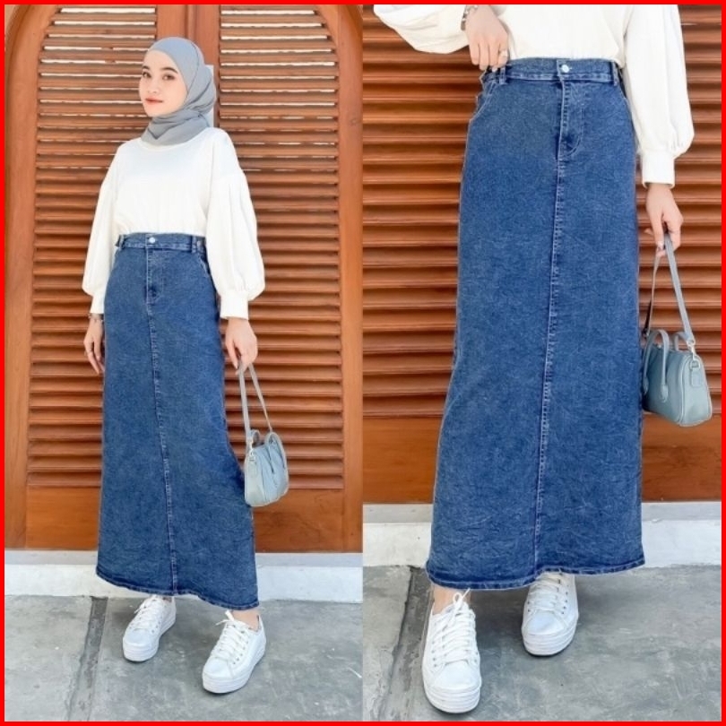Theana Rok Jeans Belah - Rok Jeans Wanita Skirt