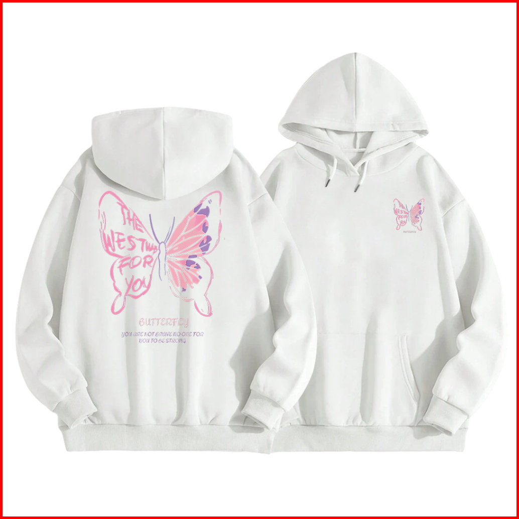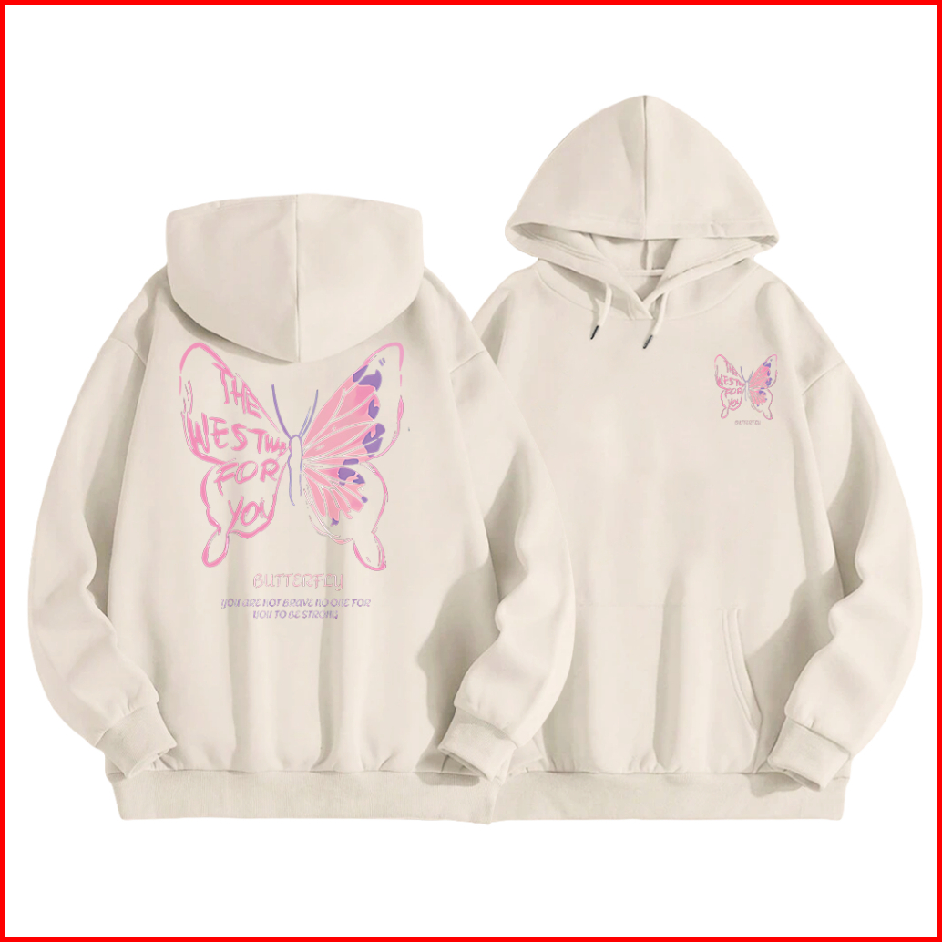 Jessica Hoodie Wanita Oversize Korean Style Pola Motif Kupu-kupu Hoodie Wanita Kekinian Terbaru Trendy