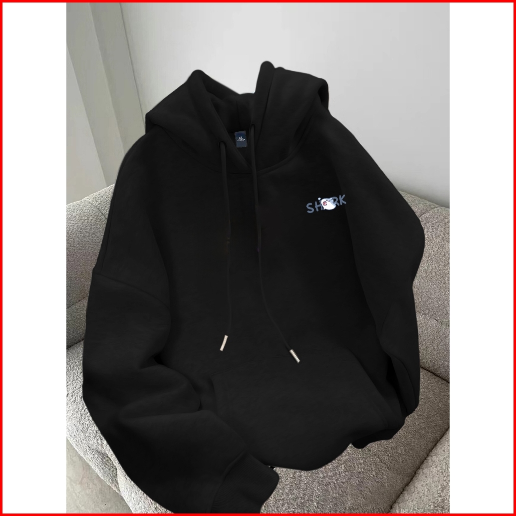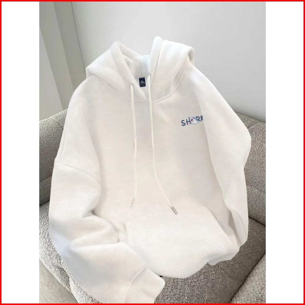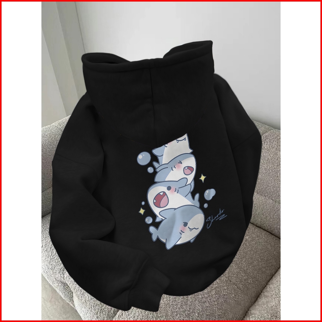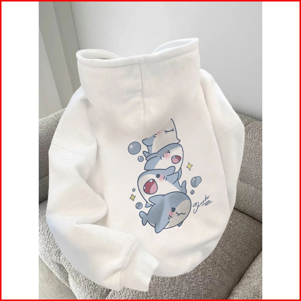 Forteid Oversize Hoodie Wanita Korean Style Oversize Hoodie Sweater Cetak Pola Empat Hiu Kartun Yang Lucu Baju Wanita Ke