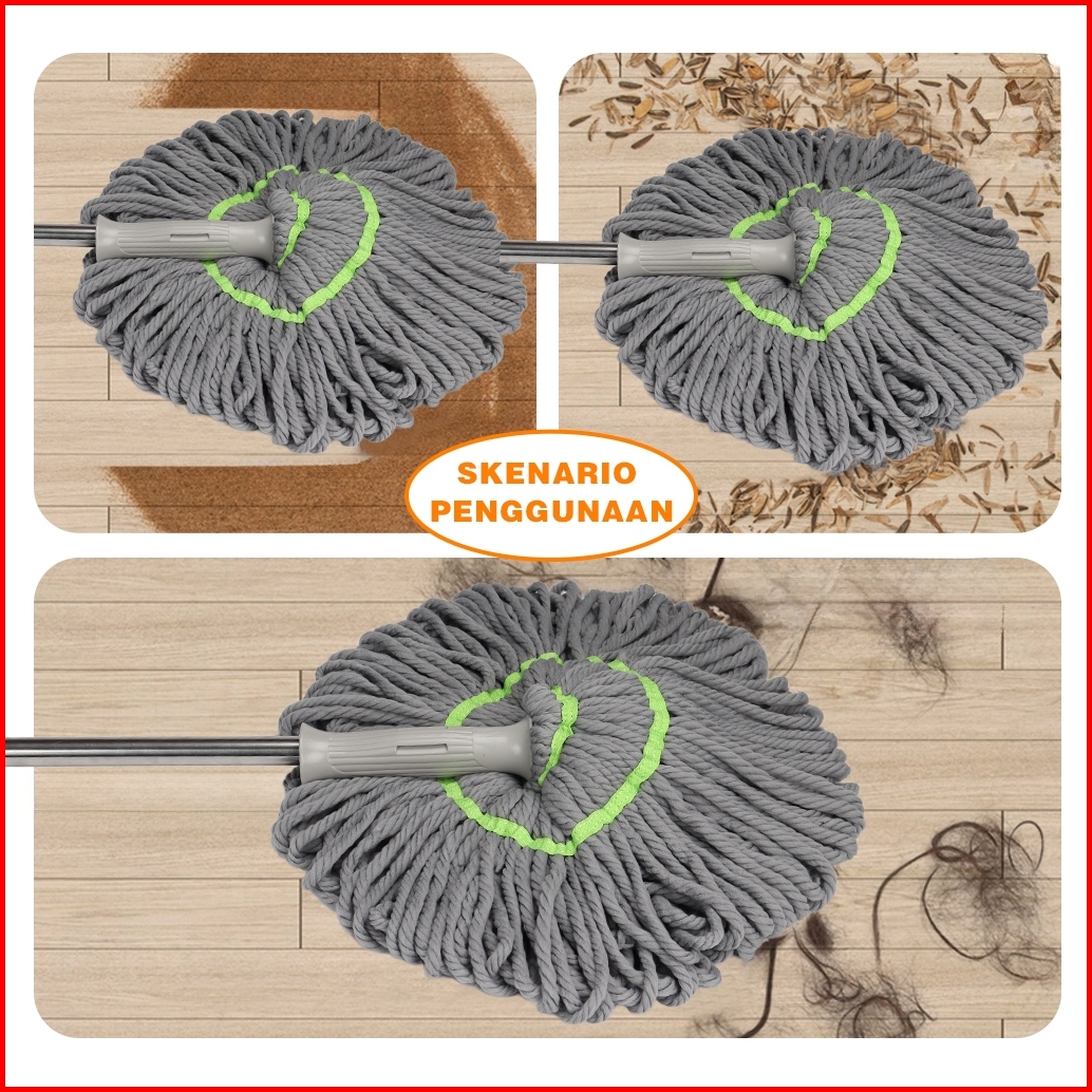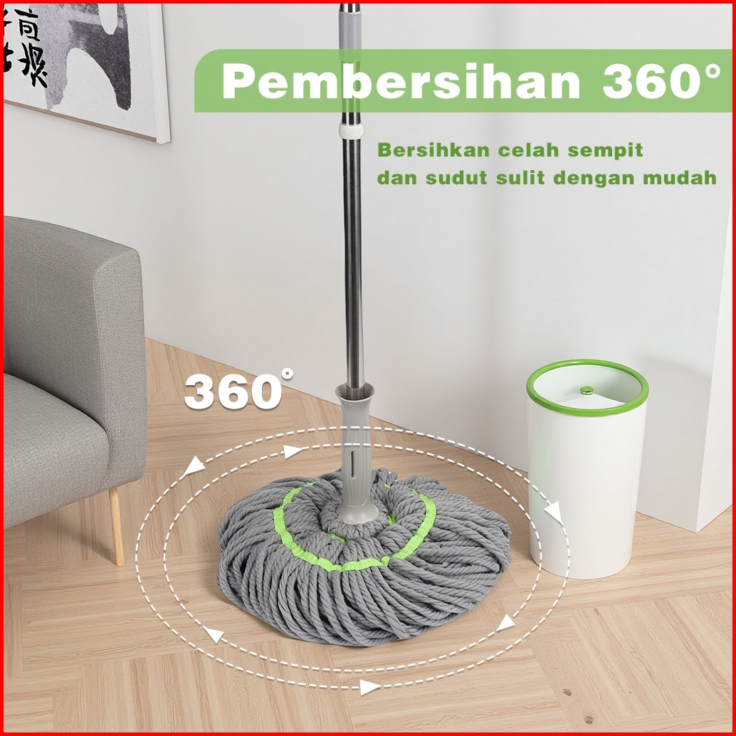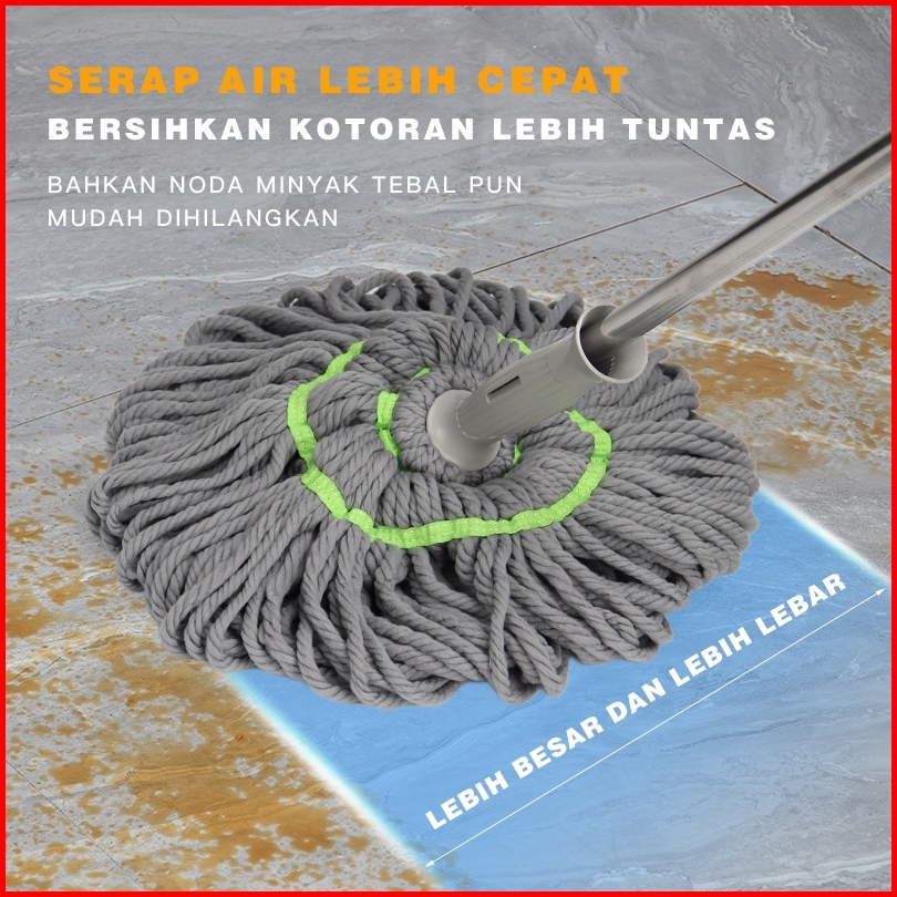 Alat Pel Lantai Putar Otomatis Daya Serap Tinggi Twist Mop Kain Microfiber Lap Pembersih Stainless