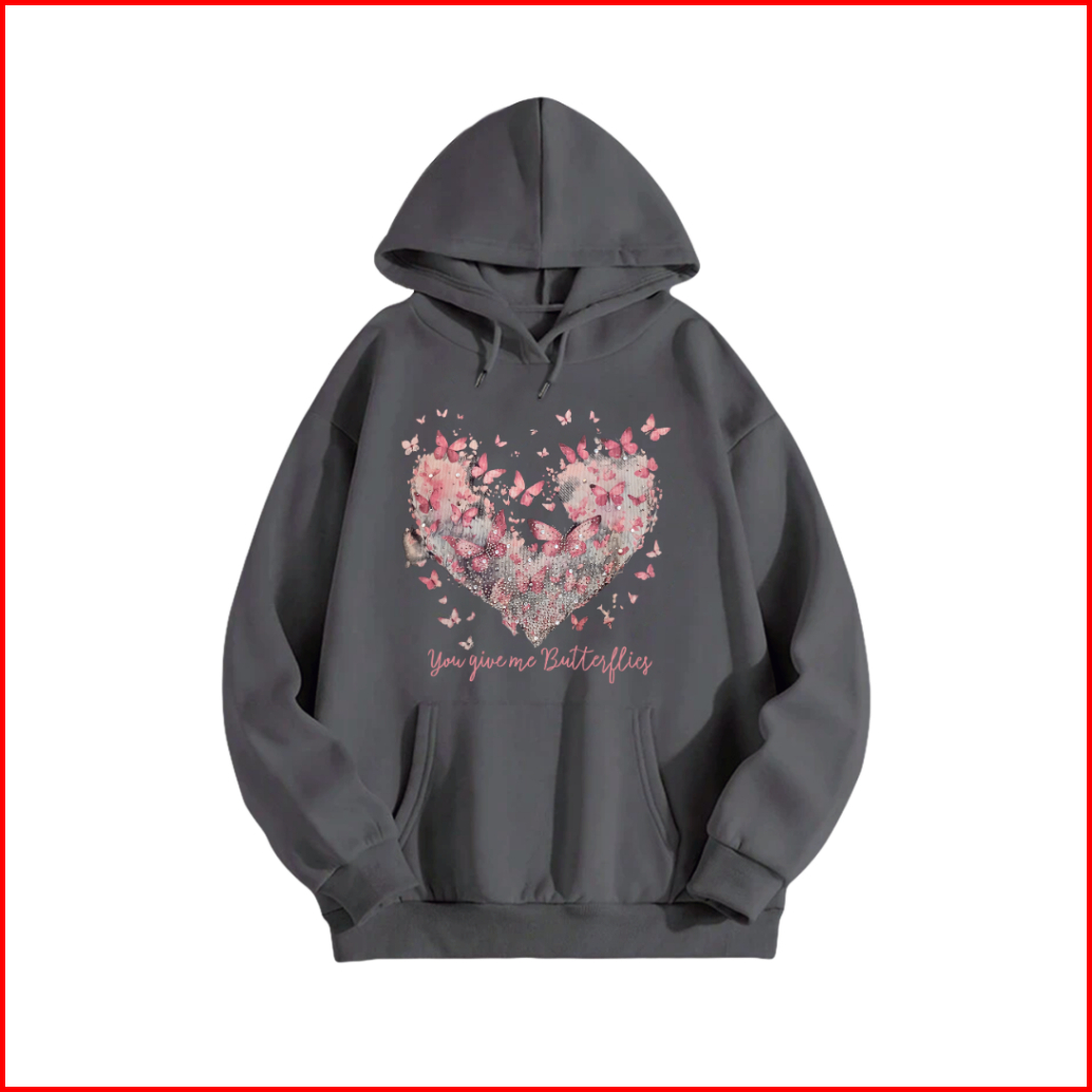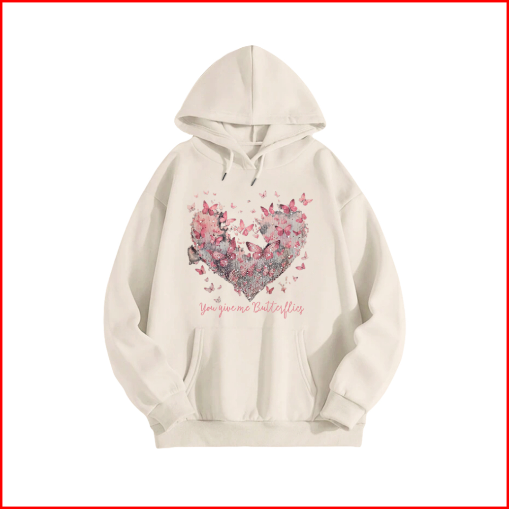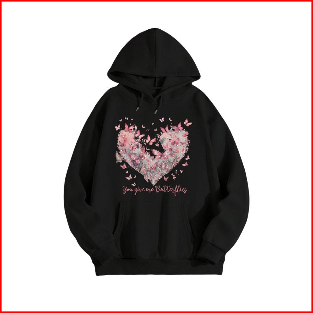 Jessica Hoodie Wanita Korean Style Terbaru Hoodie Oversize Wanita Butterfly Pink Love Bahan Milk Cotton