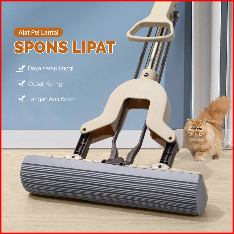 Idohouse Alat Pel Lantai Karet Set Tarik Peras Otomatis Pembersih Spons Lipat Sponge Mop Praktis C3a