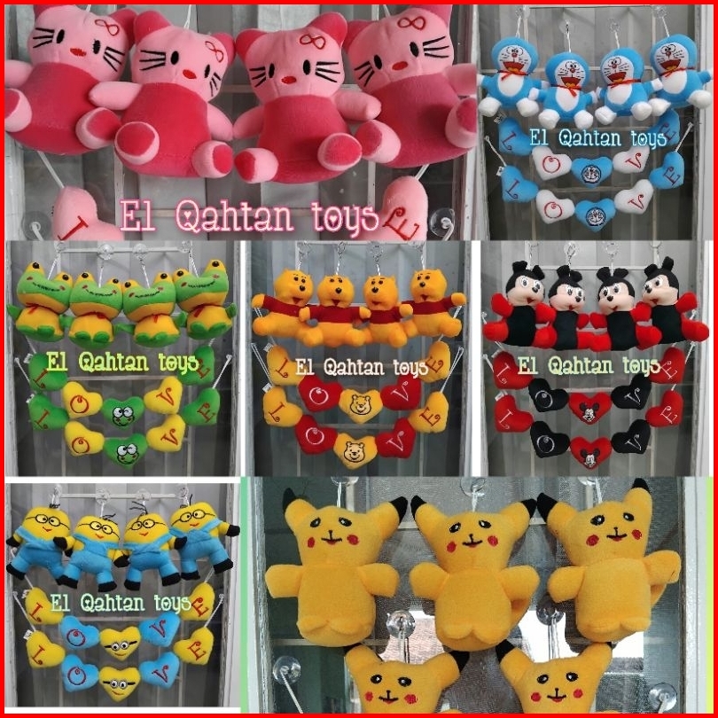 Hello kitty 4=2, Doraemon 4=2, Minions 4=2, Mickey mouse 4=2, Pokemon 4=2, Keropi 4=2, The pooh 4=2, Dora Kuning 4=2, dora merah 4=2, dora hijau 4=2, spongbob 4=2
