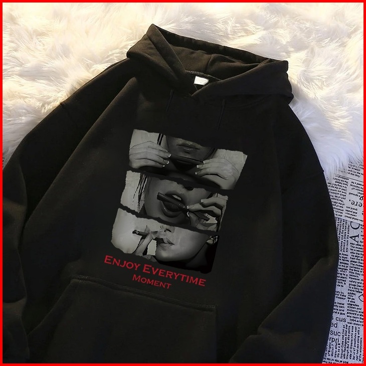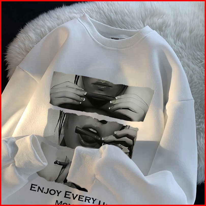 Po Floret Baju Hoodie Wanita Oversize Cetakan Busana Gaya Jalanan Retro Sweater Hoodie Wanita Premium