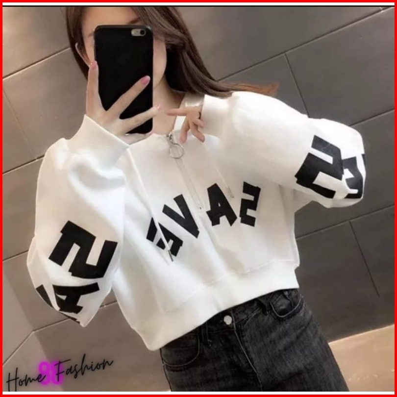 Save Croptop Hoodie Zipper Ring Korean Style Fleece Oversize