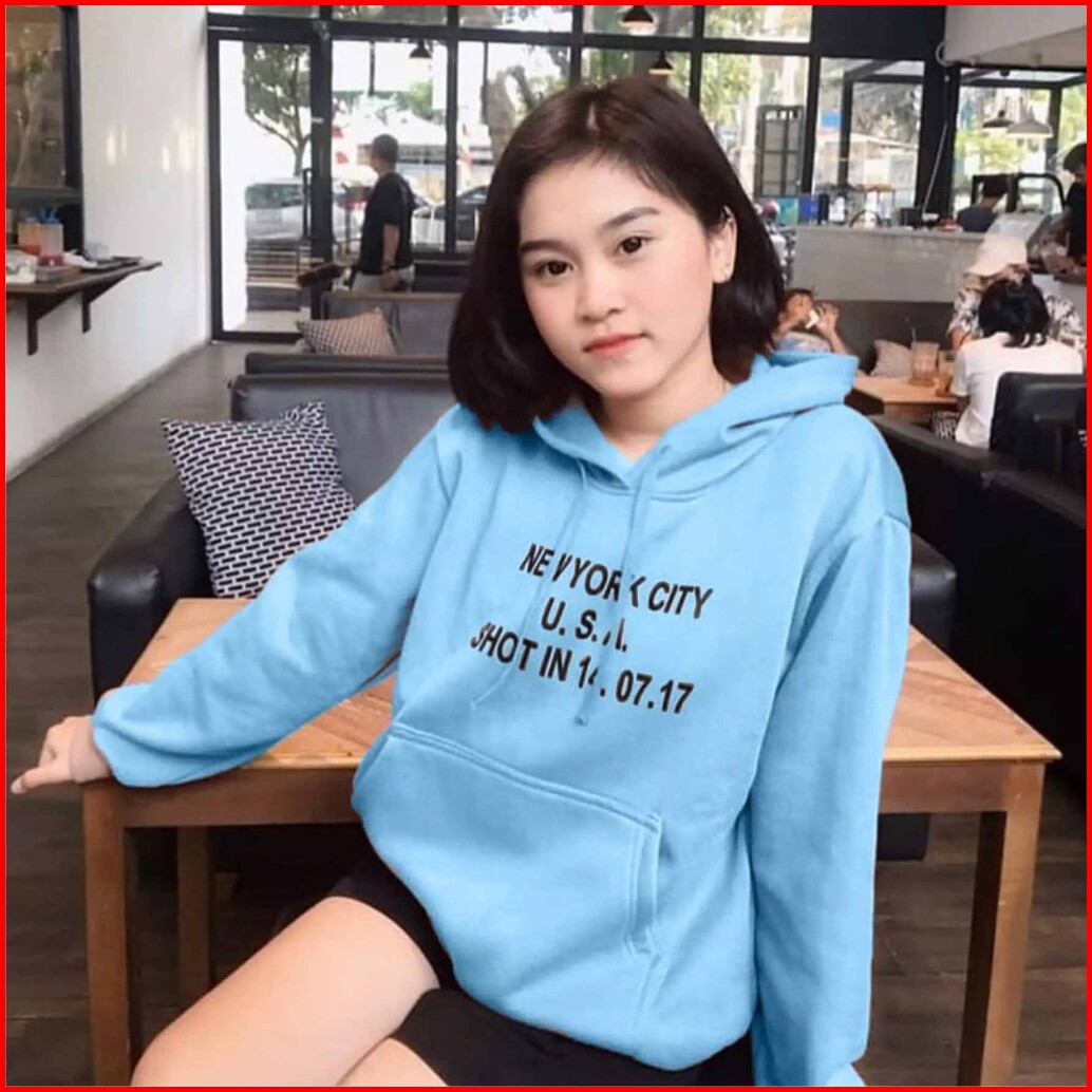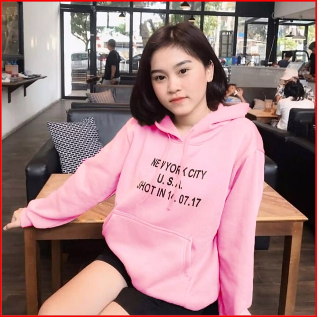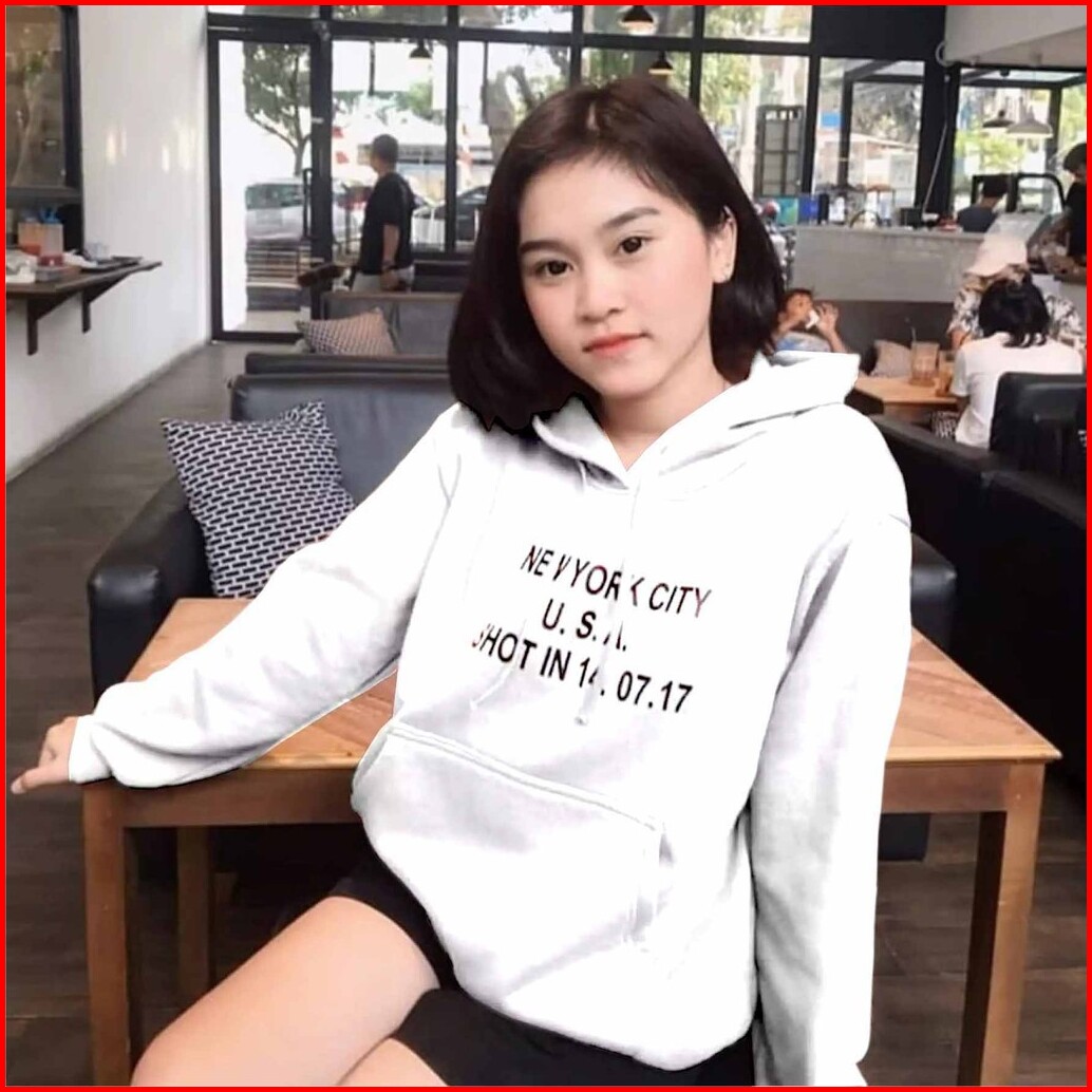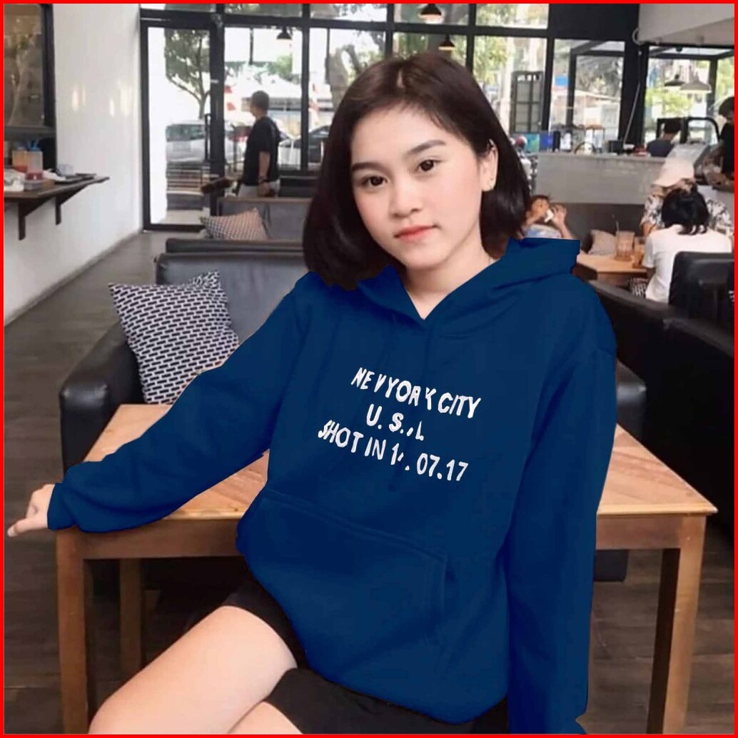 Vitaviona Offcial Sweater Hoodie Wanita New York City Size M-l-xl-xxl Bahan Babyterry
