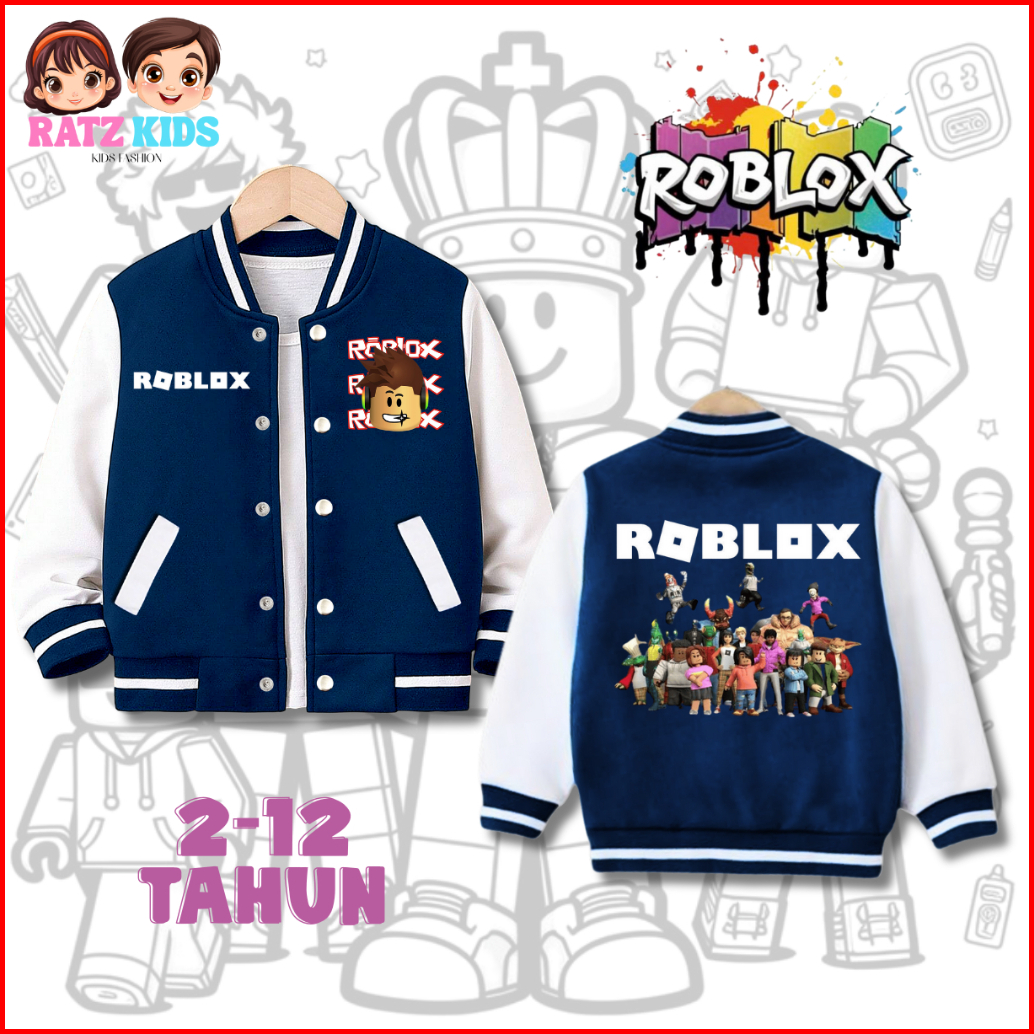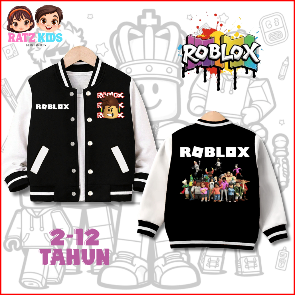 Ratz Kids - Jaket Varsity Anak Roblox Laki-laki Perempuan Usia 2-12 Tahun Bahan Fleece