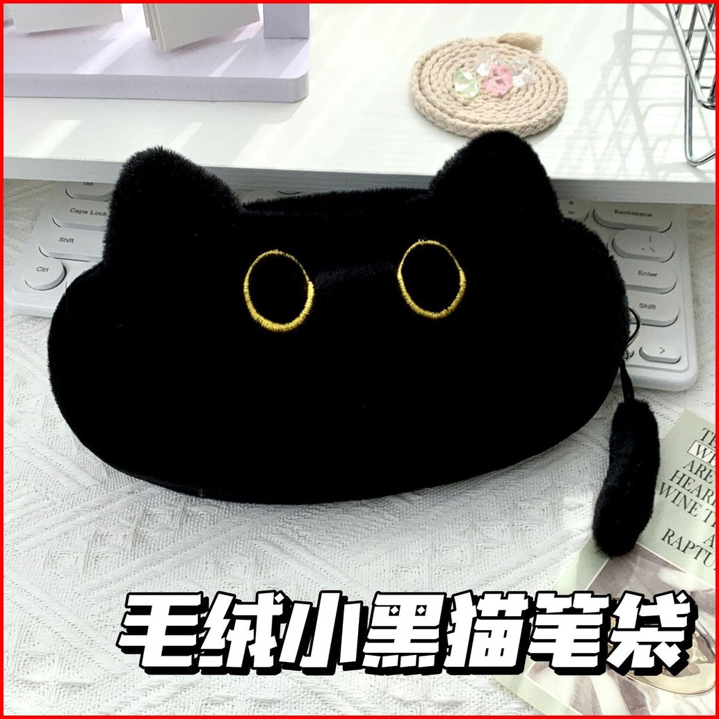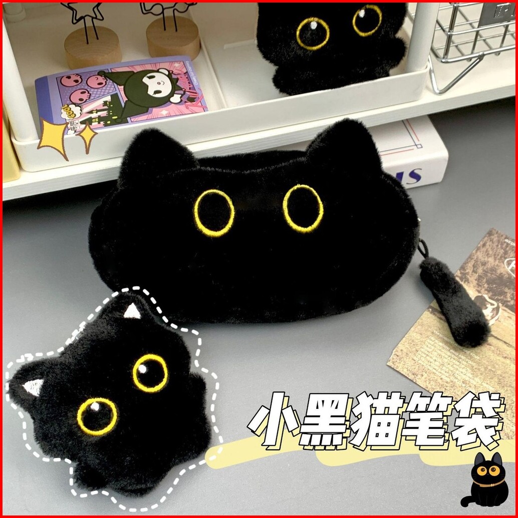 Kotak Pensil Boneka Bulu Black Cat Pencil Case Edition Gwiyeo Pencil Case Stationery Bag Kawaii