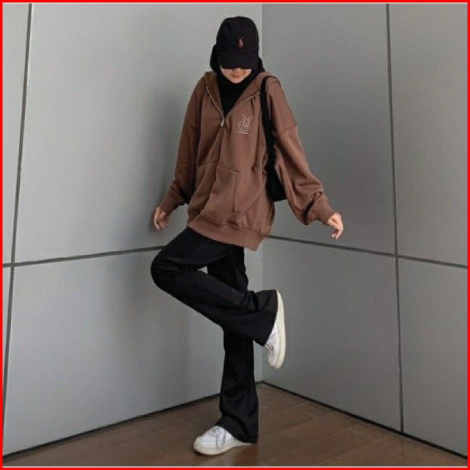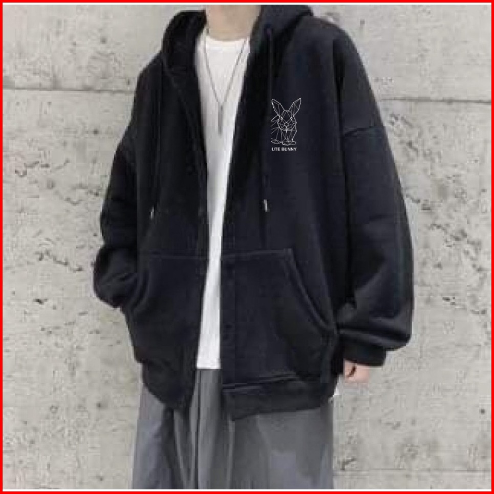 Parisdivarious Hoodie Zipper Cute Bunny Bordir Size S - Xxl Pria Wanita