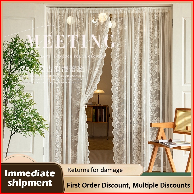 Colins 2pcs Tirai Layar Tanpa Pukulan Renda Prancis Tirai Pintu Batang Yang Dapat Ditarik Tirai Jendela Kecil Tirai Pend