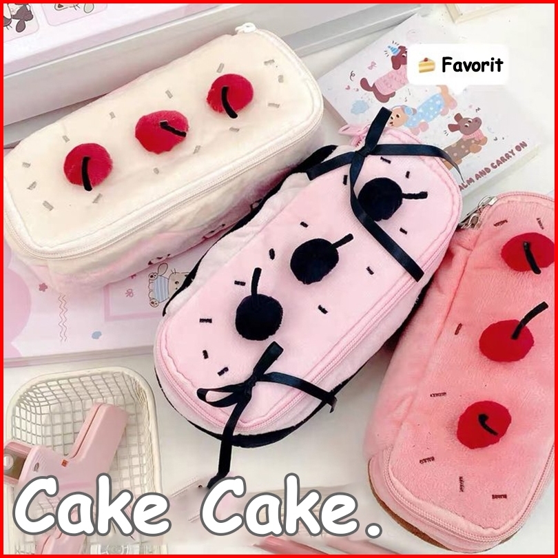 Pinkbubbly.kotak Pensil Warna Krem Ceri Kotak Pensil Kupu-kupu Hitam Kotak Pensil Lucu Ceri Hati Feminin Tas Kotak Pensi