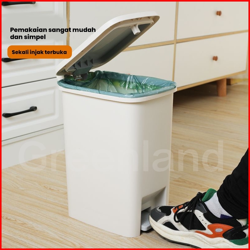Greenland Tempat Sampah Injak Kekinian Tong Sampah Plastik Dua Mode Pembuka Anti Ribet Trash Bin Dapur Kamar Mandi Kokoh