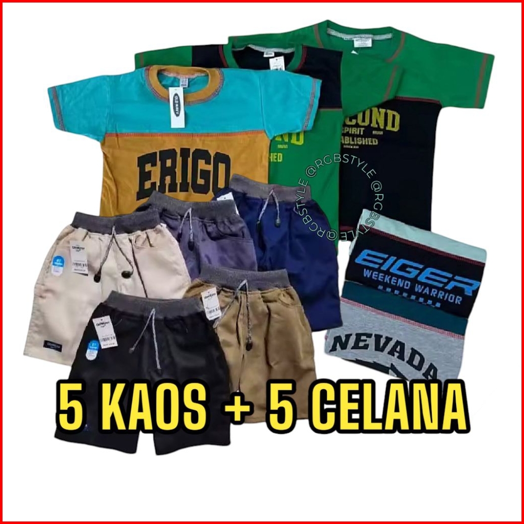Promo Murah Celana Jeans Kaos 4 Stel - 5 Pasang Setelan Baju Anak Cowok Usia 2-5-8-12 Tahun Tebal Lembut Laki-laki Jins