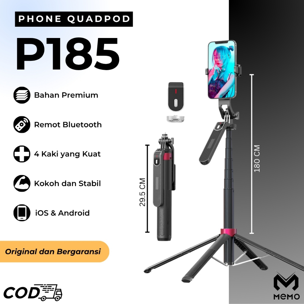 P185 Tripod / Quadpod Tongsis Bluetooth Selfie Stick Remote HP 360 1.8m Stabilizer