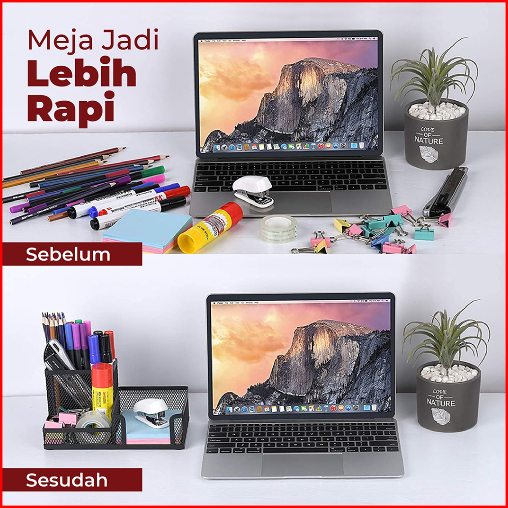 Memo Holder Desk Set Tempat Pena Tulis Meja Kantor Jaring Besi 3 Sekat