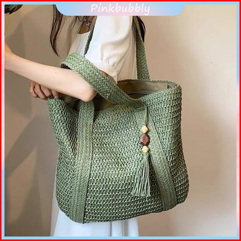Pinkbubbly.readykorea Ins Tas Ate Tas Bahu Wanita Baru Tas Jerami Tas Pantai Tas Rekreasi Fashion Tas Bahu Tas Travel Ta