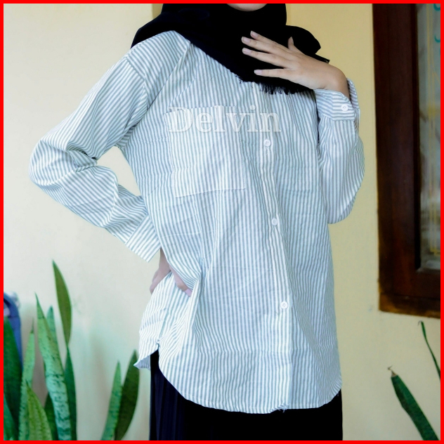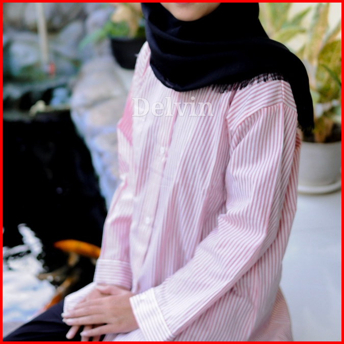 Kemeja Salur Oversize Bahan Katun Polyster Terbaru 2025