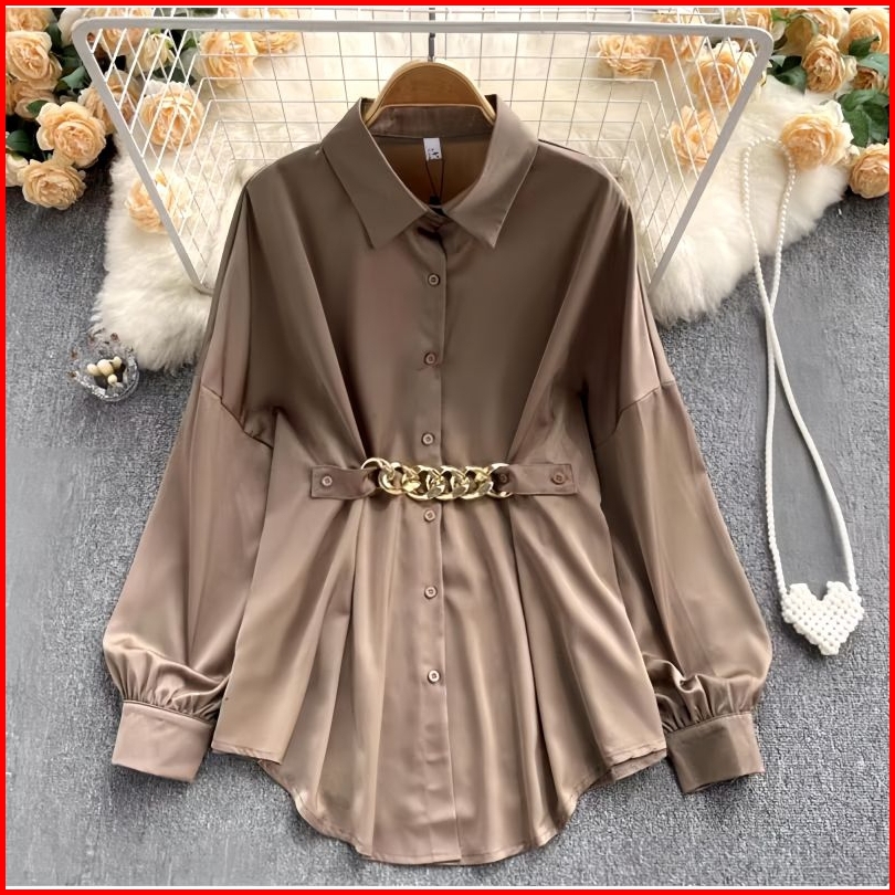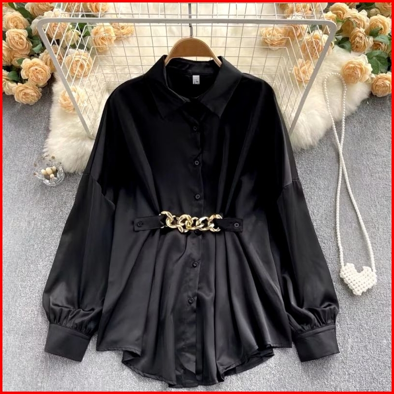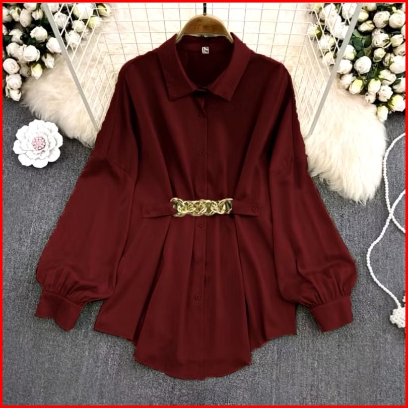 Melda Crinkle Kemeja Kerja Wanita Atasan Polos Korean Sytle Premium Blouse Terlaris