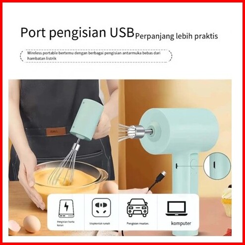 Mixer Elektrik 3 Kecepatan Yang Dapat Disesuaikan Mixer Tangan Tanpa Kabel Mixer Adonan Kue Elektrik Alat Dapur Multifun