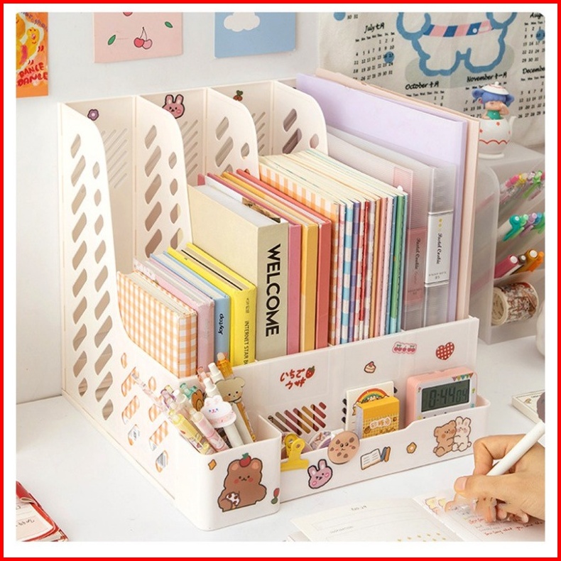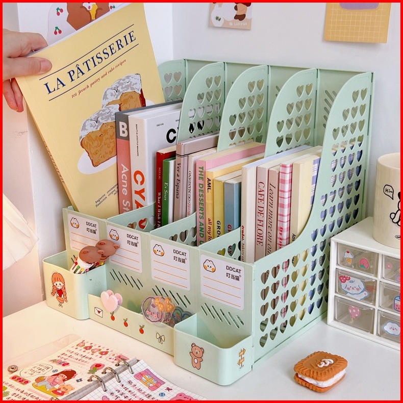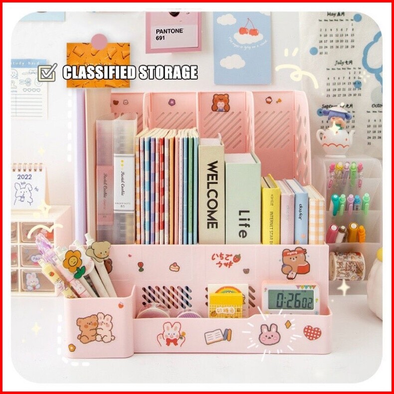Penjual Lokal 4 Warna Organizer Rak Buku Minimalis Desk Organizer Rak Penyimpanan Barang Rak Pena Ins Meja Belajar Stati