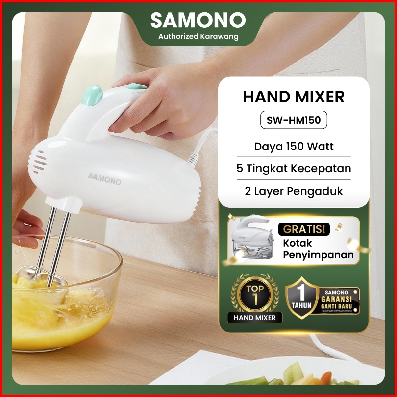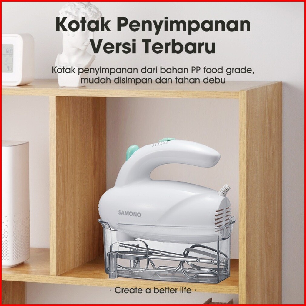 Samono Hand Mixer 150watt Low Watt 5 Kecepatan Mixer Baking Free Kotak Penyimpanan Mixer Kue Telur Adonan Baking Mixer K