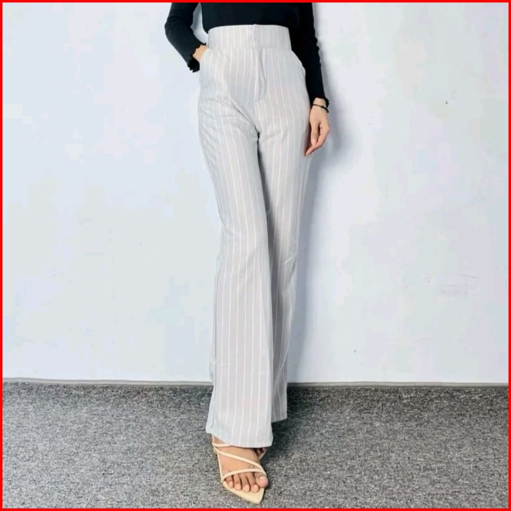 Flare Pants Stripe Bangkok - Celana Semi Cutbray Knit Premium - Cutbray Highwaist Pants - Celana Wanita Semi Cutbray