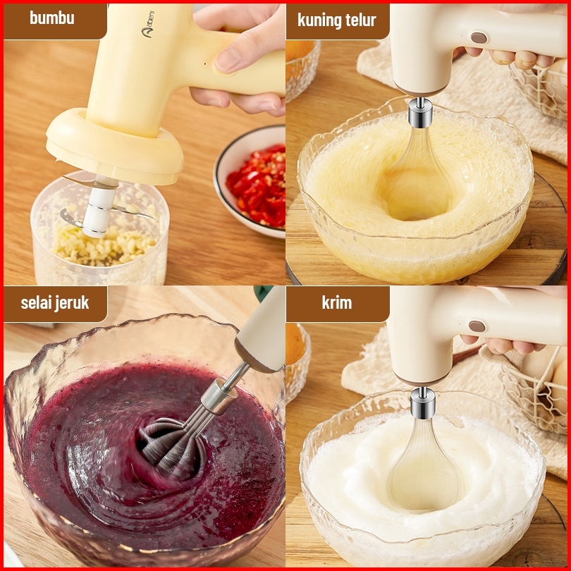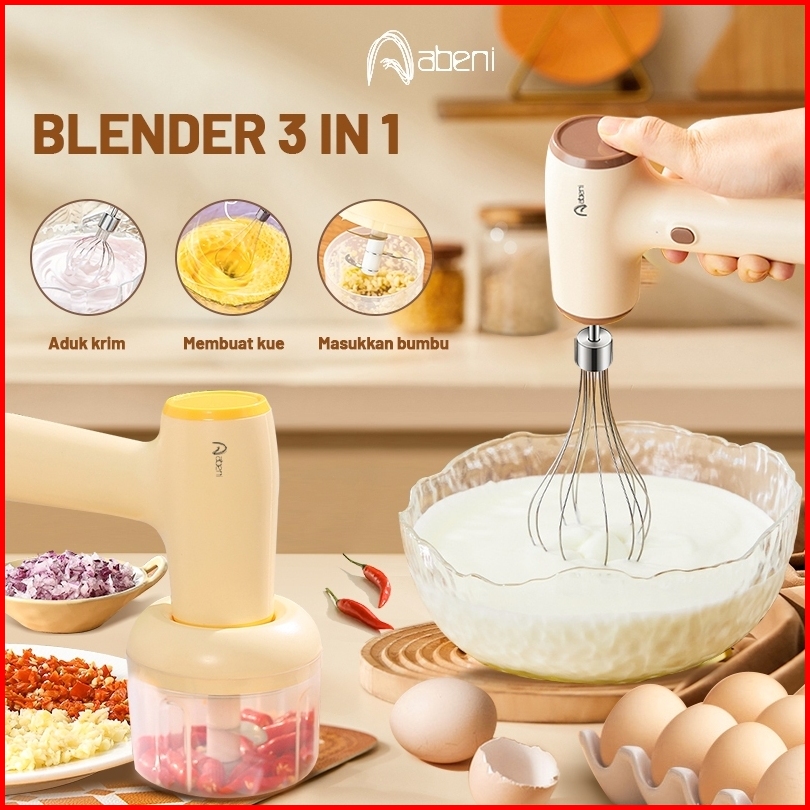 Abeni Blender Mixer Mini 3in1 Usb Portable Hand Mixer Elektrik Mikser Pengaduk Adonan Telur Chopper Mini Food Processor