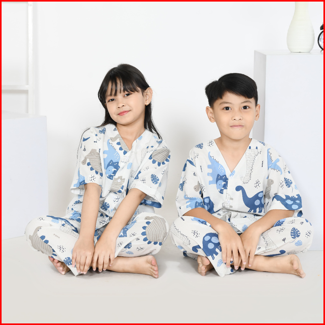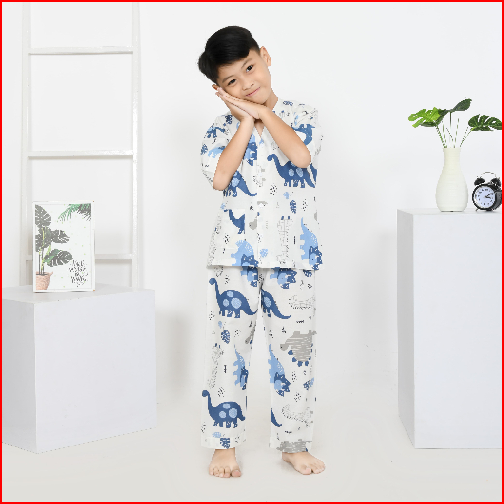 King Azlan Piyama Anak Laki Laki Motif Baby Dino White Mat Katun
