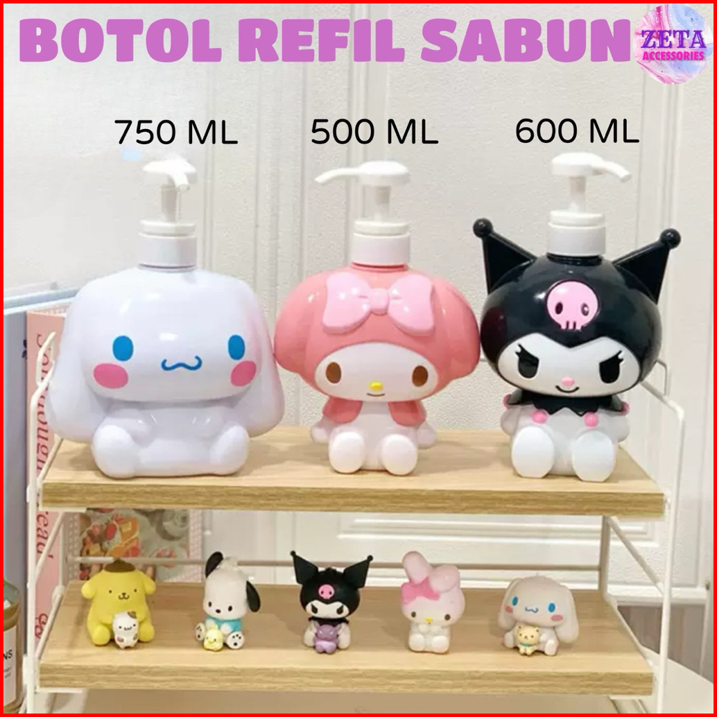 Botol Refil Pump Dispenser Sabun Lotion Kapasitas 500ml - 950ml Bentuk Kartun Kuromi Melodi Cinamoroll